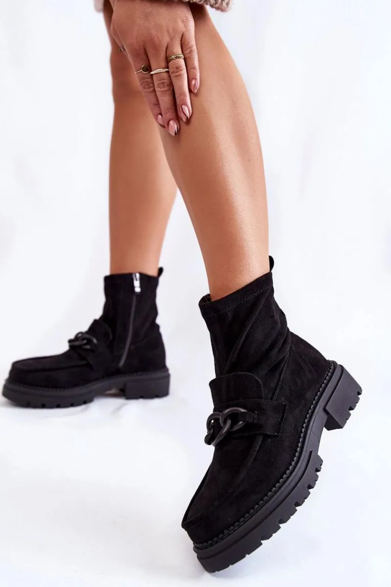 Online Boto Damskie Zamszowe Botki La.Fi 250042B-SU Czarne Czarny