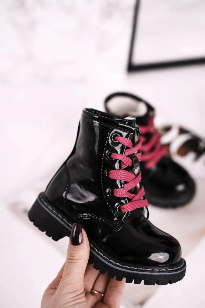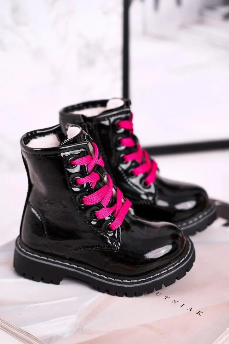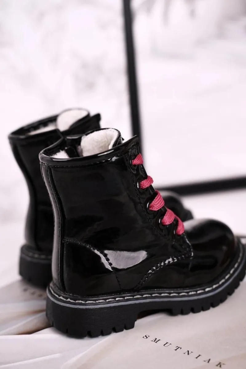 Online Boto Dziecięce Botki Ocieplone Futerkiem Lakierowane Czarne Pinkie