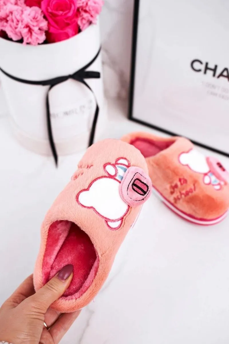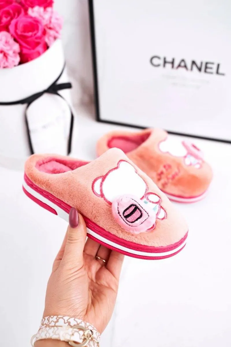 Online Boto Dziecięce Klapki Papcie Z Misiem Różowe Go To School