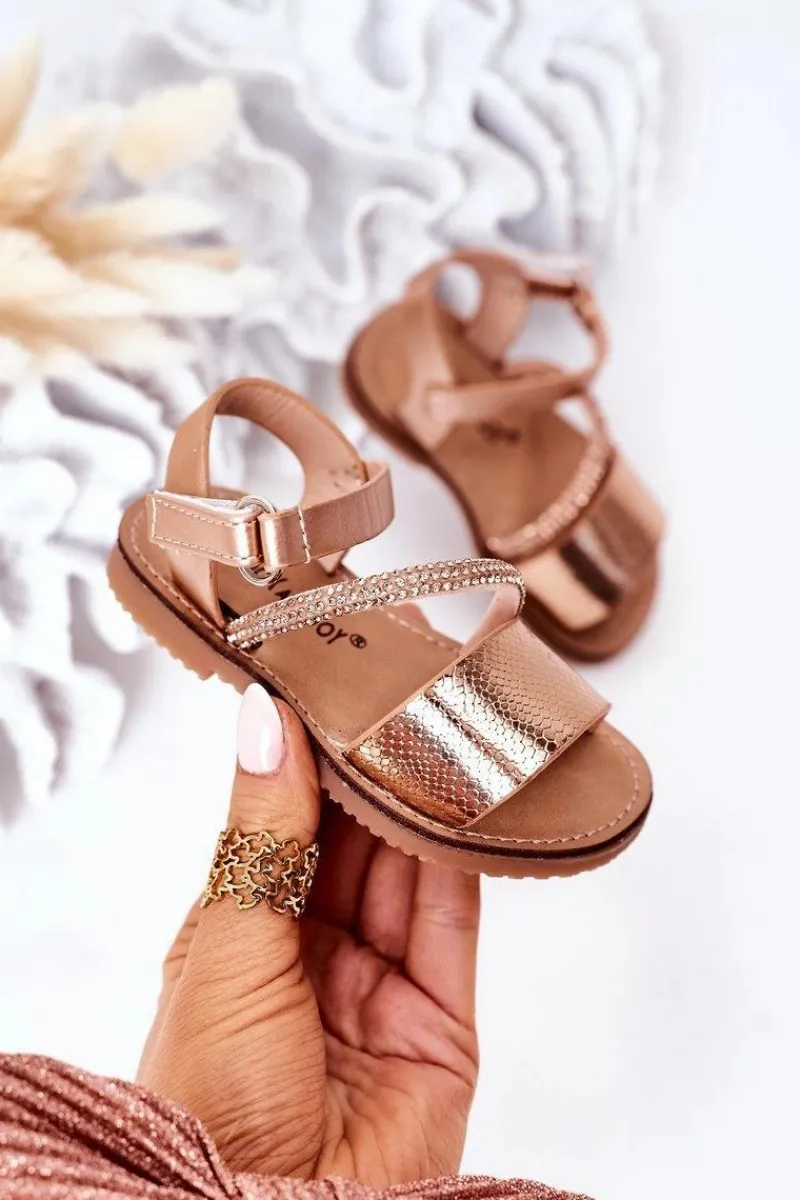 Lekkie sandały dziecięce wykonane ze skóry ekologicznej. Gumowa, antypoślizgowa podeszwa oraz zapinanie na rzep zadbają o komfort Twojej pociechy. Koniecznie sprawdź całą naszą kolekcję dziecięcych sandałek! Przy wyborze rozmiaru prosimy sugerować się tabelą rozmiarów.