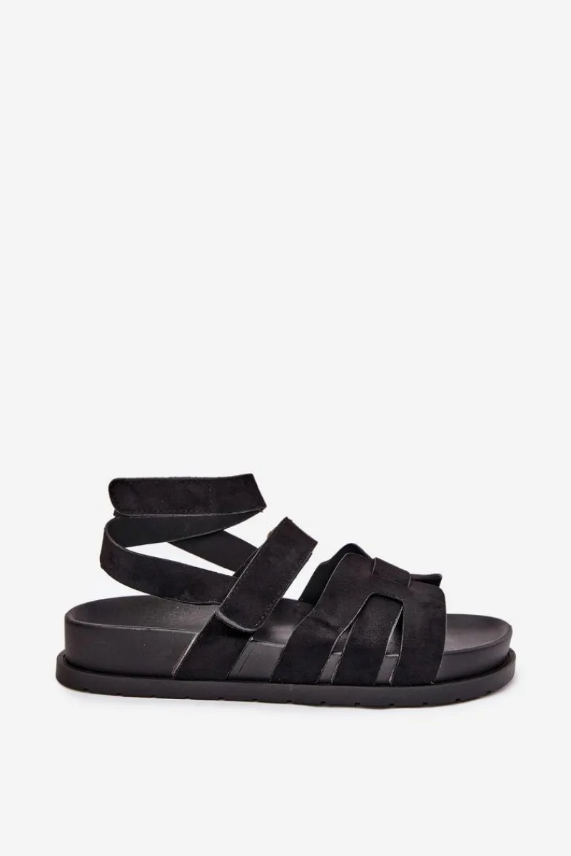 Sandały damskie wykonane z eko zamszu, osadzone na delikatnej platformie, to doskonała propozycja na letnie dni. Zapinane na podwójny rzep, zapewniają łatwe dopasowanie do stopy. Model wyróżnia się paskiem oplatającym nogę, który dodaje im wyjątkowego charakteru. Idealne do codziennych stylizacji, łączą komfort z modnym wyglądem. Przy wyborze rozmiaru prosimy sugerować się tabelą rozmiarów.