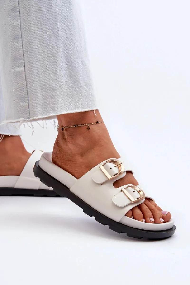 Klasyczne damskie klapki na platformie. Wykonane z eko skóry. Z przodu regulowane paski z klamrami, co pozwala na lepsze dopasowanie do stopy. Platforma zapewnia stabilność i wygodę noszenia przez cały dzień. Doskonałe na letnie spacery czy wieczorne wyjścia. Przy wyborze rozmiaru prosimy sugerować się tabelą rozmiarów.