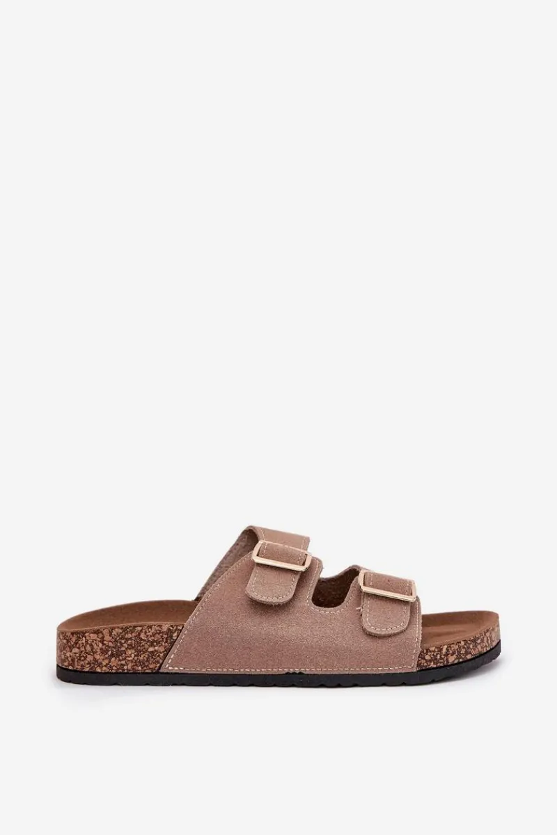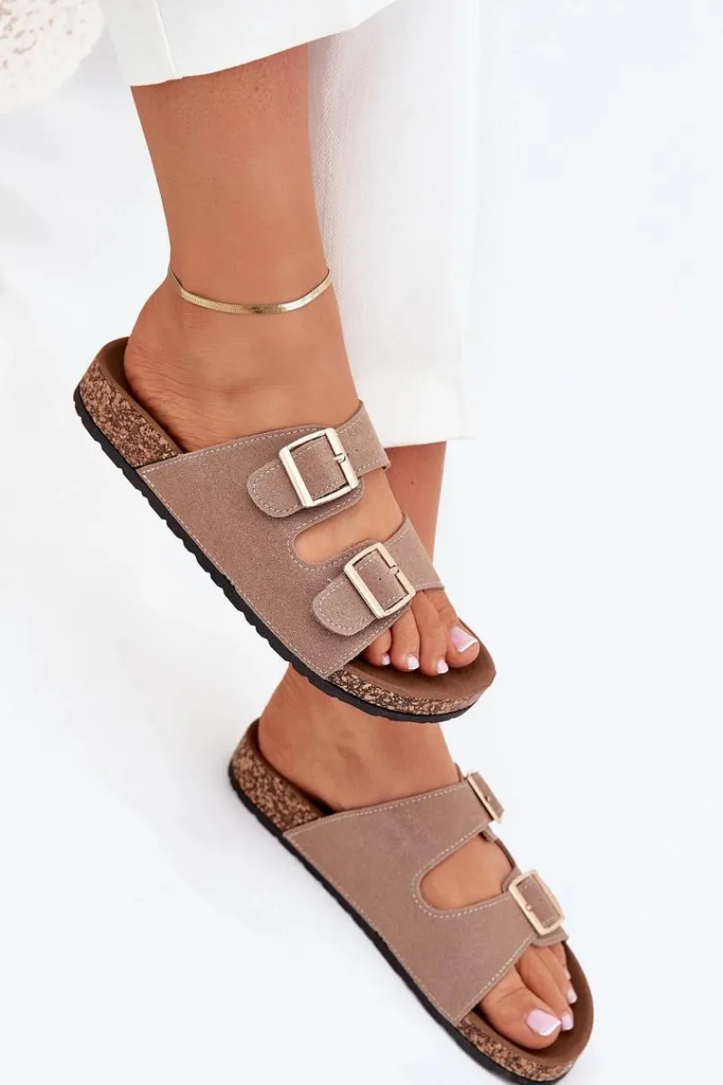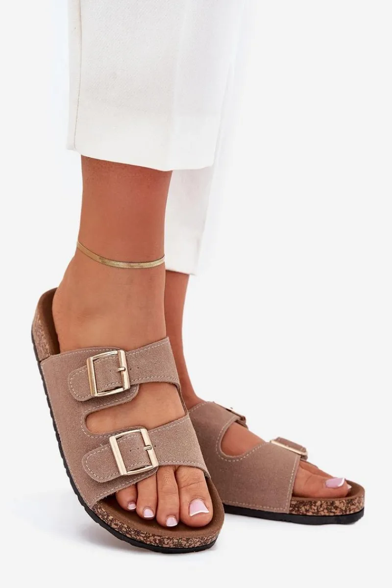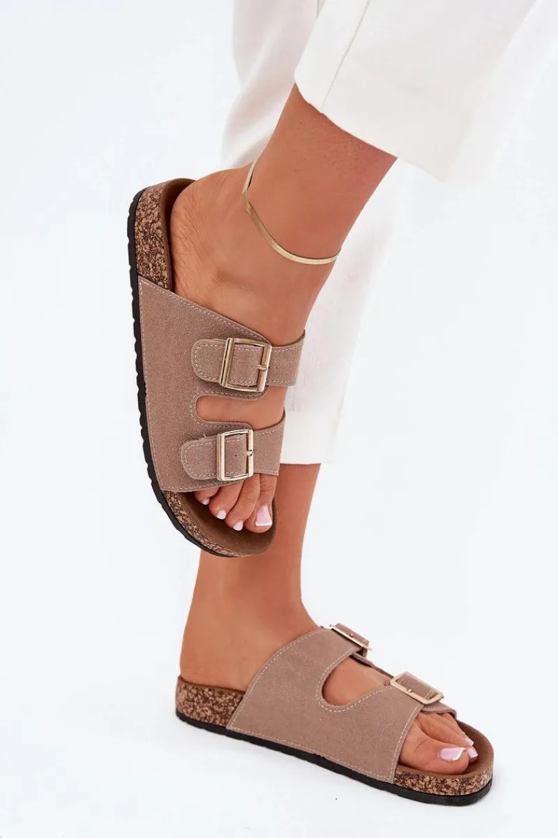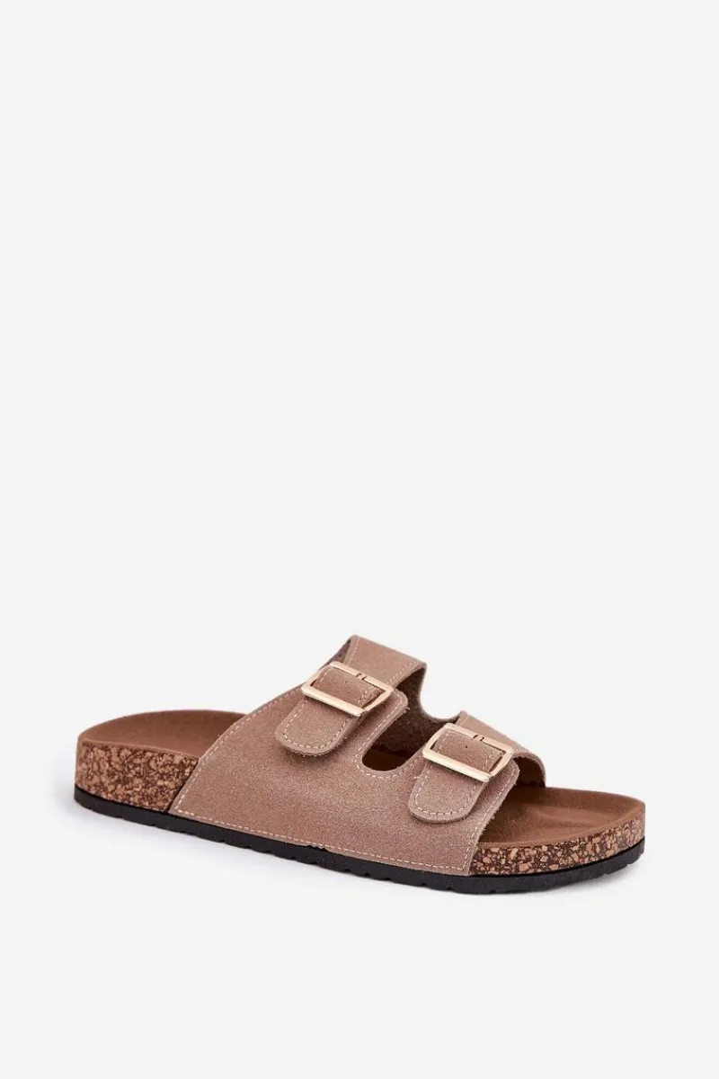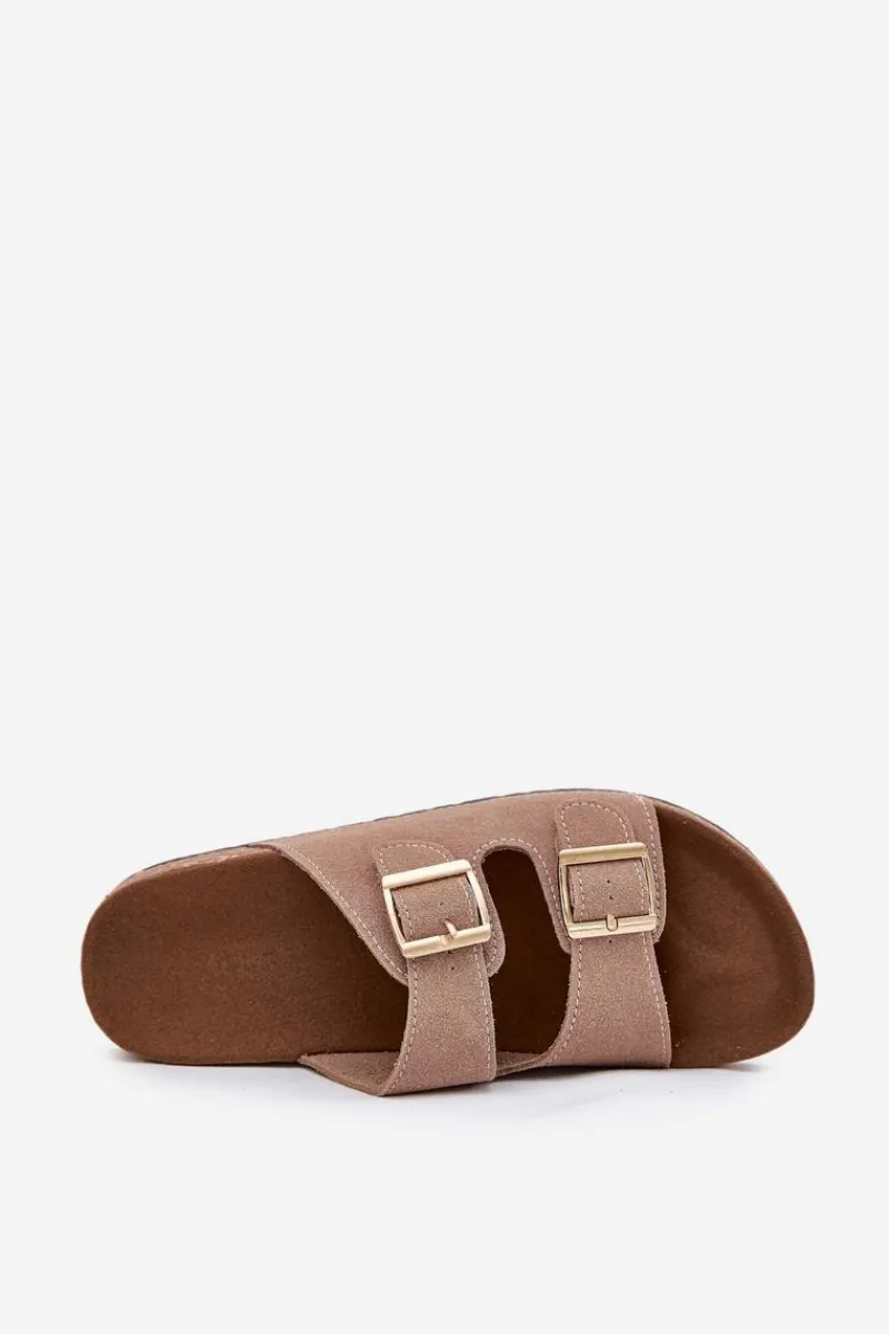 Online Boto Klapki Damskie Ze Złotymi Klamrami I Przeszyciami Khaki Lunera Beżowy