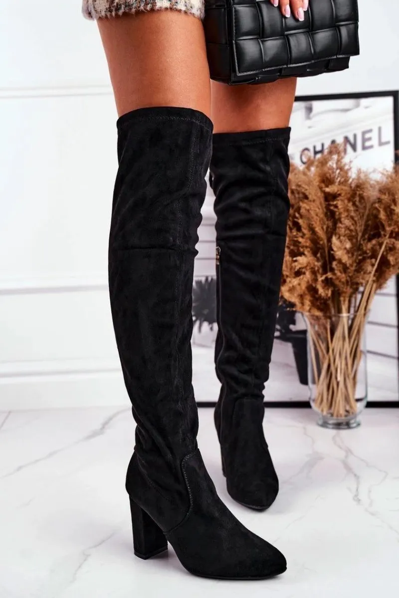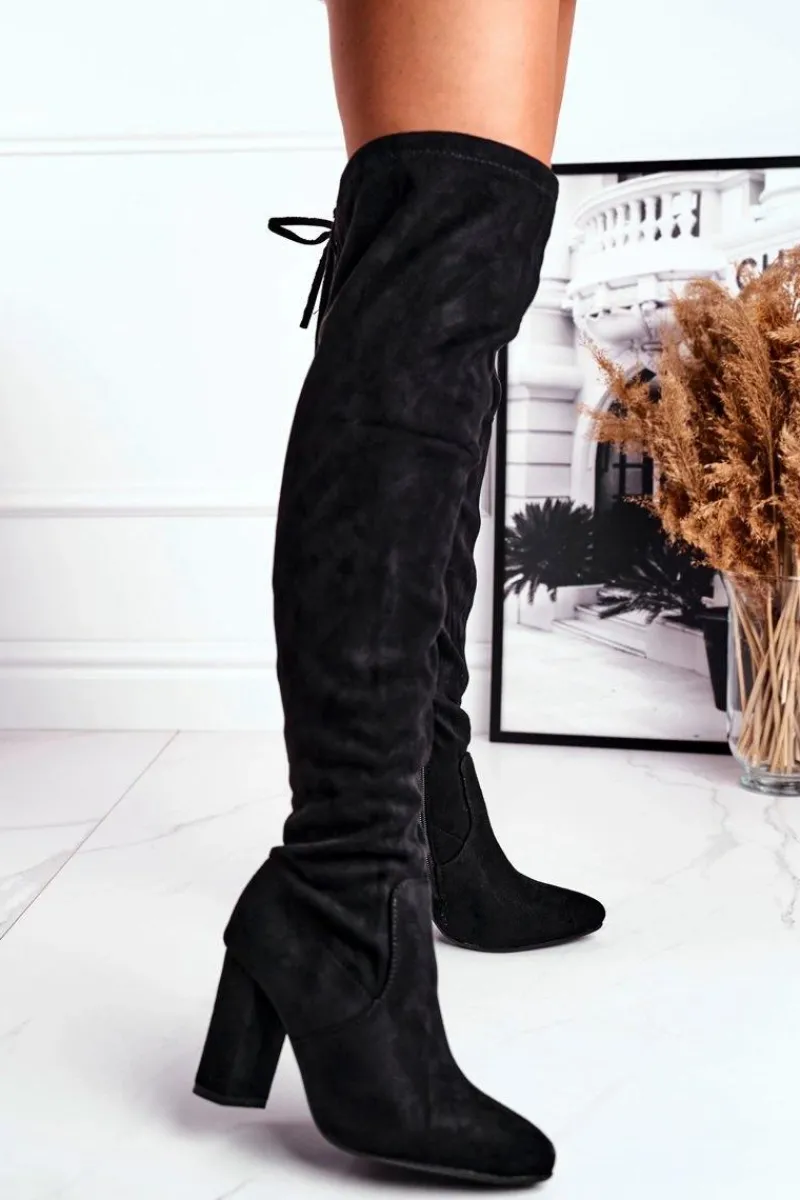 Online Boto Kozaki Damskie Do Kolana Eko-Zamsz Czarne First Time
