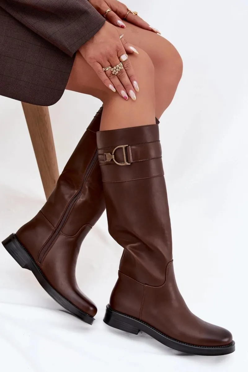 Kozaki damskie z eko skóry łączą wygodę z subtelnym stylem. Osadzone na płaskim obcasie, zapewniają komfort przy codziennym noszeniu, a zamek błyskawiczny ułatwia zakładanie. Noski zaokrąglone dodają im łagodnego charakteru, a wnętrze ocieplone wyłącznie na wysokości stopy gwarantuje przyjemne ciepło. Srebrny detal na górze cholewki wprowadza elegancki akcent, podkreślając nowoczesny wygląd butów. Przy wyborze rozmiaru prosimy kierować tabelą rozmiarów.