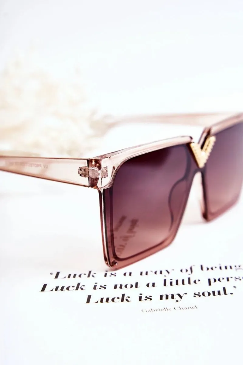 Okulary przeciwsłoneczne świetnie sprawdzą się w wielu sytuacjach! Nie tylko podczas letniego sezonu, ale także zimowego, kiedy promienie słoneczne odbijają się od śniegu. Model kwadratowy. Wykonane z tworzywa sztucznego. Przy mostku znajduje się ozdobny, złoty element. Górna część soczewek posiada oprawkę. Informacja od producenta: okulary absorbują szkodliwe promienie UV, kategoria 3.