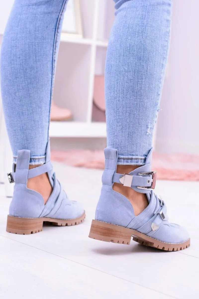 Online Boto Lu Boo Błękitne Zamszowe Botki Z Wycięciami Rock Girl