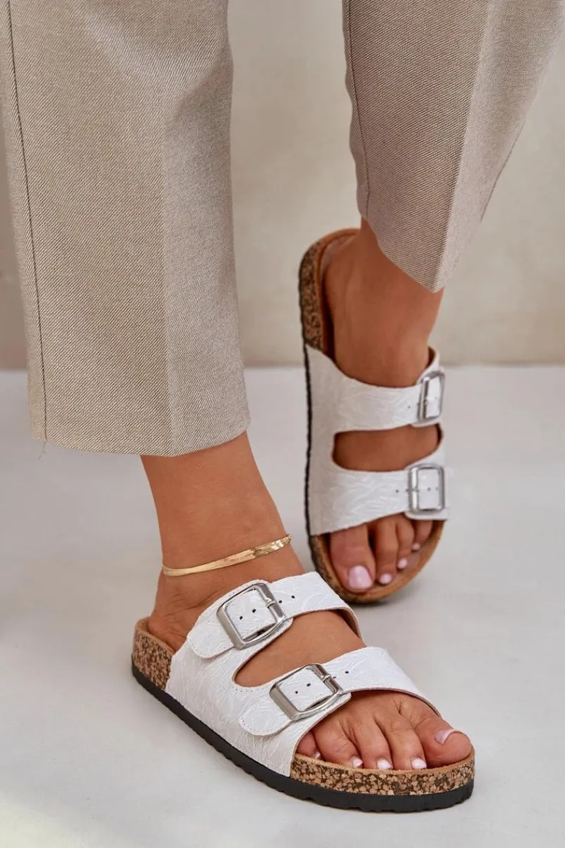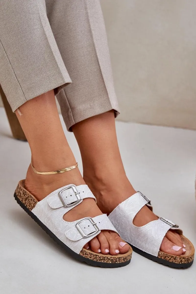 Klapki damskie wykonane z materiału tekstylnego, to doskonała propozycja na ciepłe dni. Dwa paski z klamrami zapewniają łatwe dopasowanie do stopy, a korkowa podeszwa dodaje lekkości i modnego charakteru. Profilowana wkładka gwarantuje wygodę przez cały dzień, czyniąc te klapki idealnym wyborem na spacery czy wakacyjne wyjazdy. Komfort i styl w jednym! Przy wyborze rozmiaru rosimy sugerować się tabelą rozmiarów.