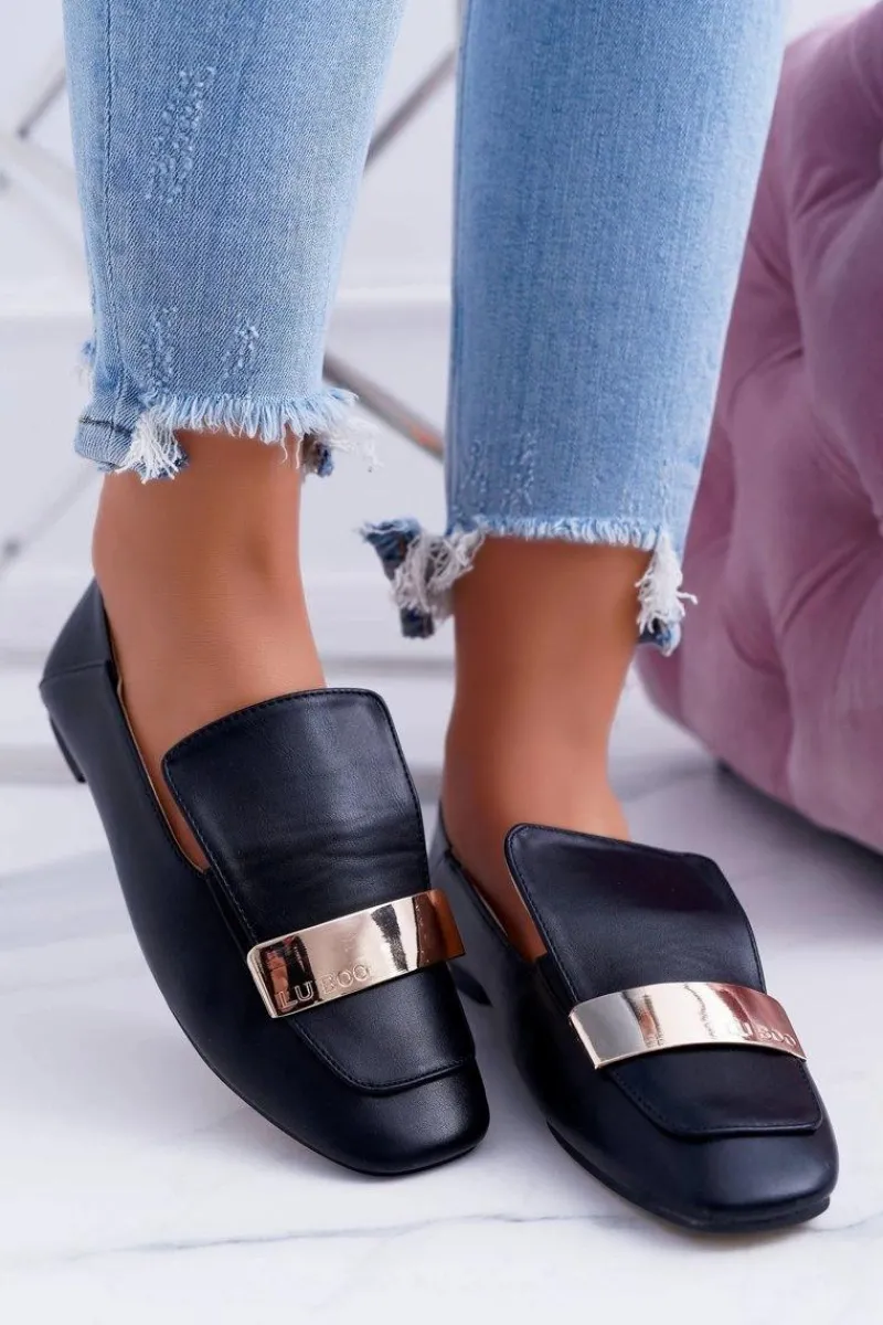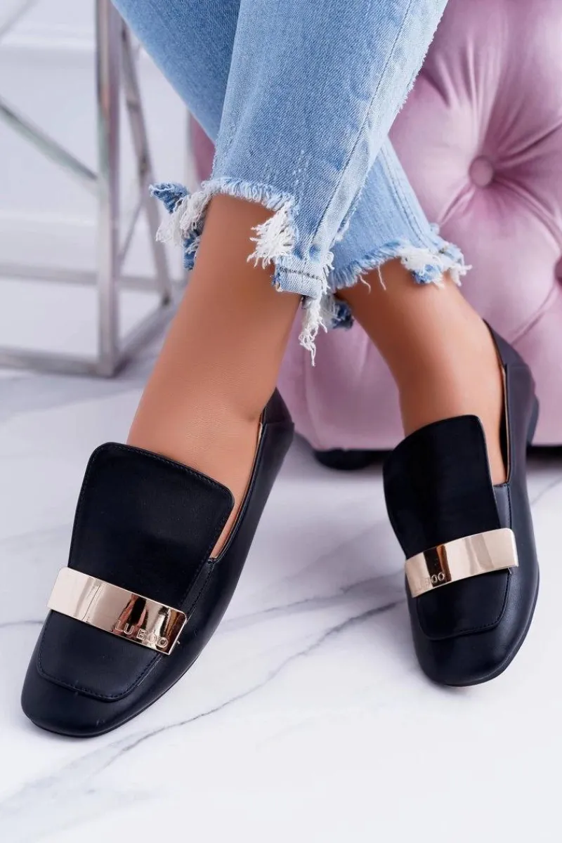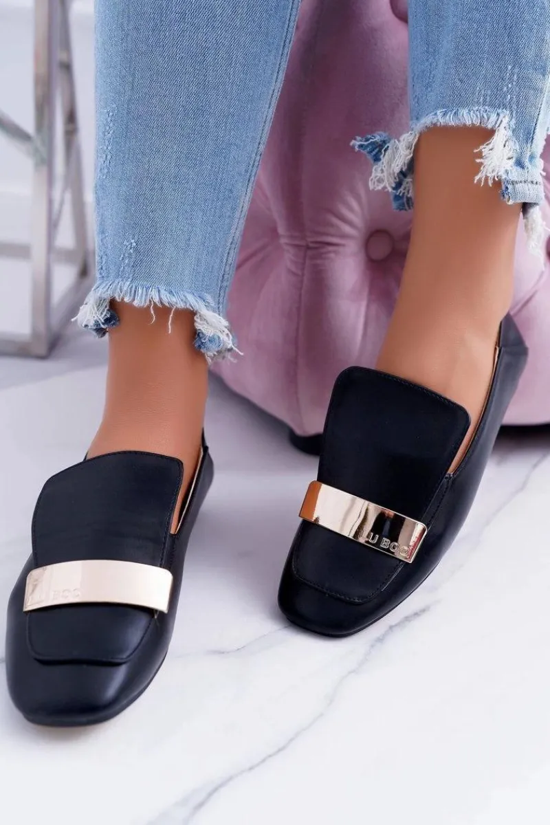 Online Boto Mokasyny Damskie Lu Boo Czarne Licowe Z Blaszką Harlem