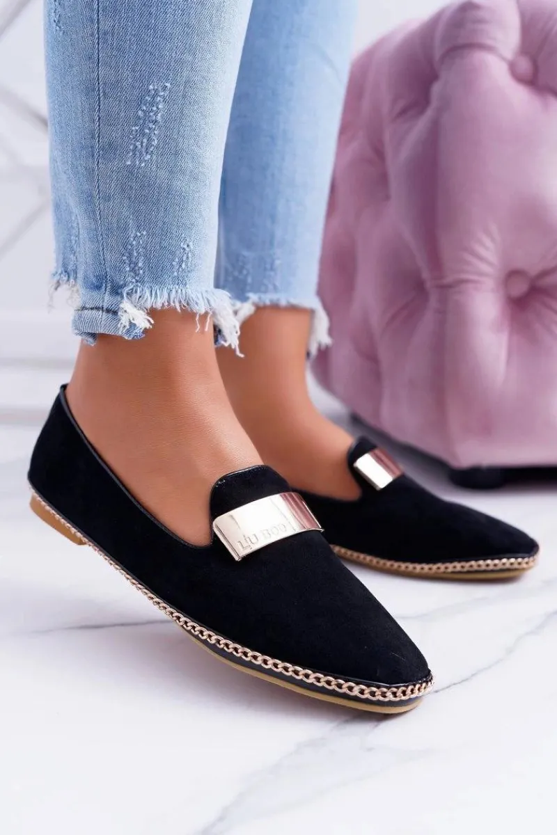 Zamszowe mokasyny to buty, które nigdy nie wyjdą z mody, a na pewno nie te od firmy Lu Boo. Pasują zarówno do codziennych stylizacji jak i tych bardziej eleganckich. Delikatny wierzch w połączeniu z delikatną profilowaną wkładką to gwarancja niesamowitego komfortu o jakim zawsze marzymy. Złote dodatki w postaci blaszki oraz łańcuszka są wspaniałym dodatkiem. Więc nie zwlekaj i kup je już teraz 🙂 Mniejsza rozmiarówka. Sugerujemy wybrać rozmiar większy niż zazwyczaj nosisz.