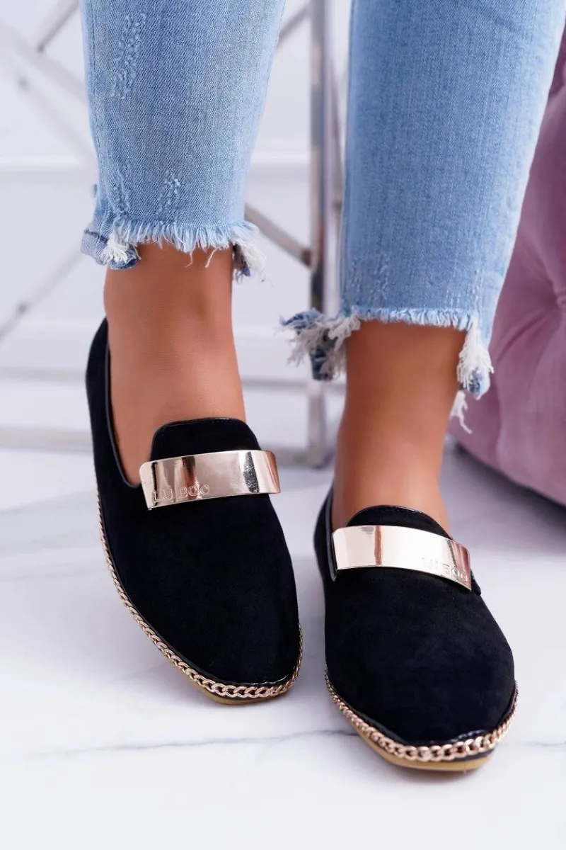 Online Boto Mokasyny Damskie Lu Boo Czarne Złoty Łańcuch Panama