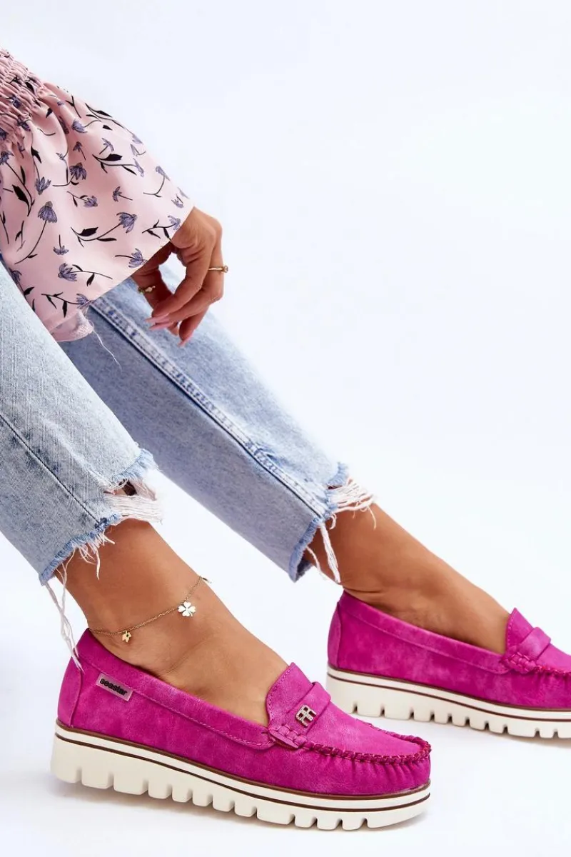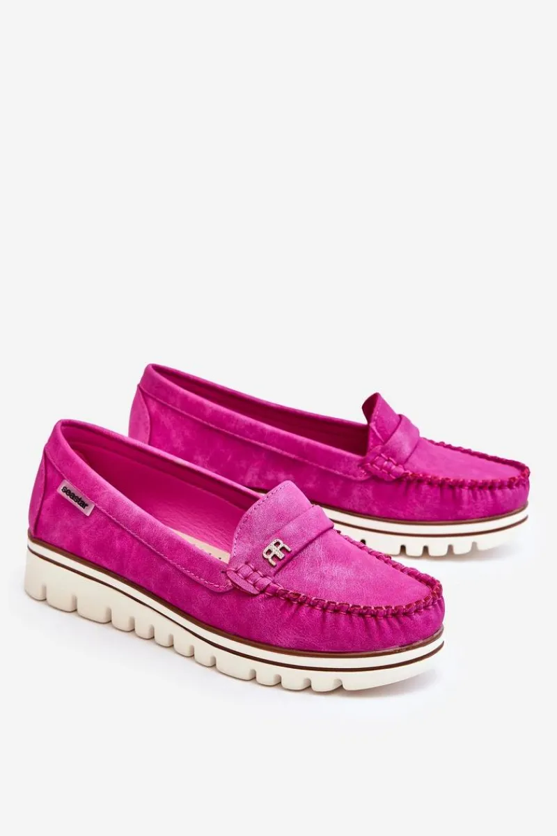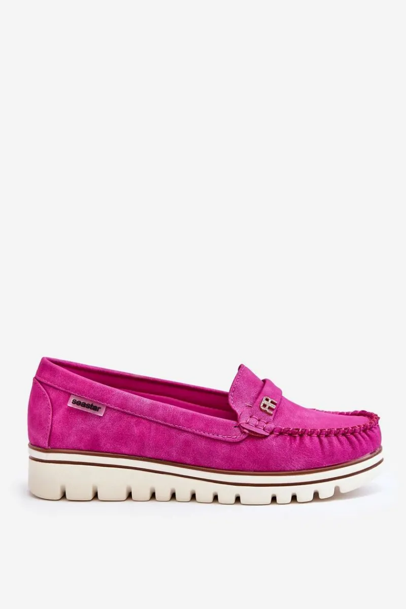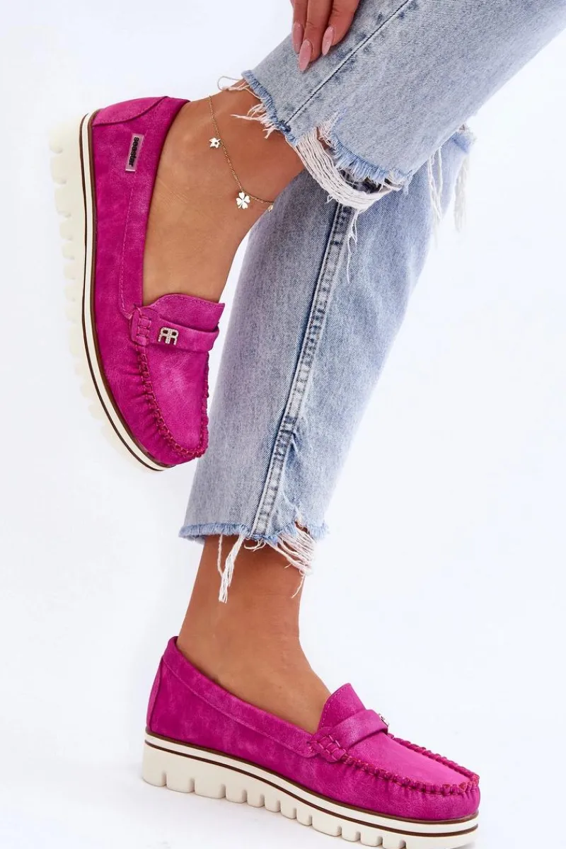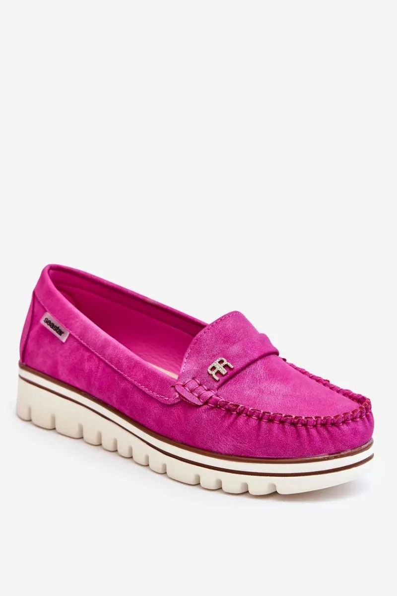 Klasyczne, damskie mokasyny zostały wykonane z eko skóry. Posiadają na przodzie paseczek z ozdobą. Model ten został osadzony na platformie i niskim koturnie. Wkładka w tym obuwiu została wykonana z naturalnej skóry i jest niezwykle wygodna w użytkowaniu. Przy wyborze rozmiaru prosimy sugerować się tabelą rozmiarów.