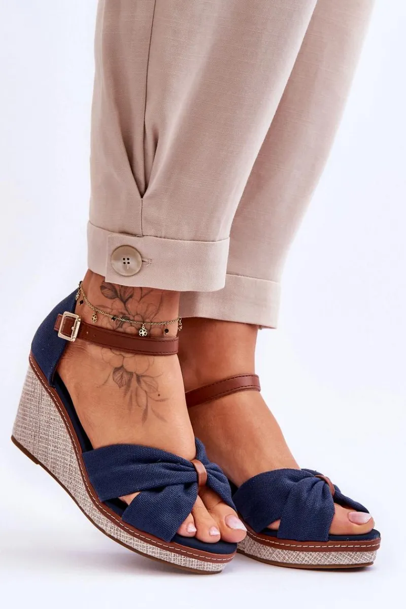 Wygodne sandały na modnym koturnie to klasyka wśród damskiego, letniego obuwia. Wkładka oraz wierzch wykonane zostały z tkaniny. Zapiętek został wzmocniony. Buty posiadają zapięcie na regulowany pasek ze sprzączką. Podeszwa w tych sandałkach jest wykonana z tworzywa i jest antypoślizgowa. Te sandały to idealny wybór do letnich stylizacji. Przy wyborze rozmiaru prosimy sugerować się tabelą rozmiarów.