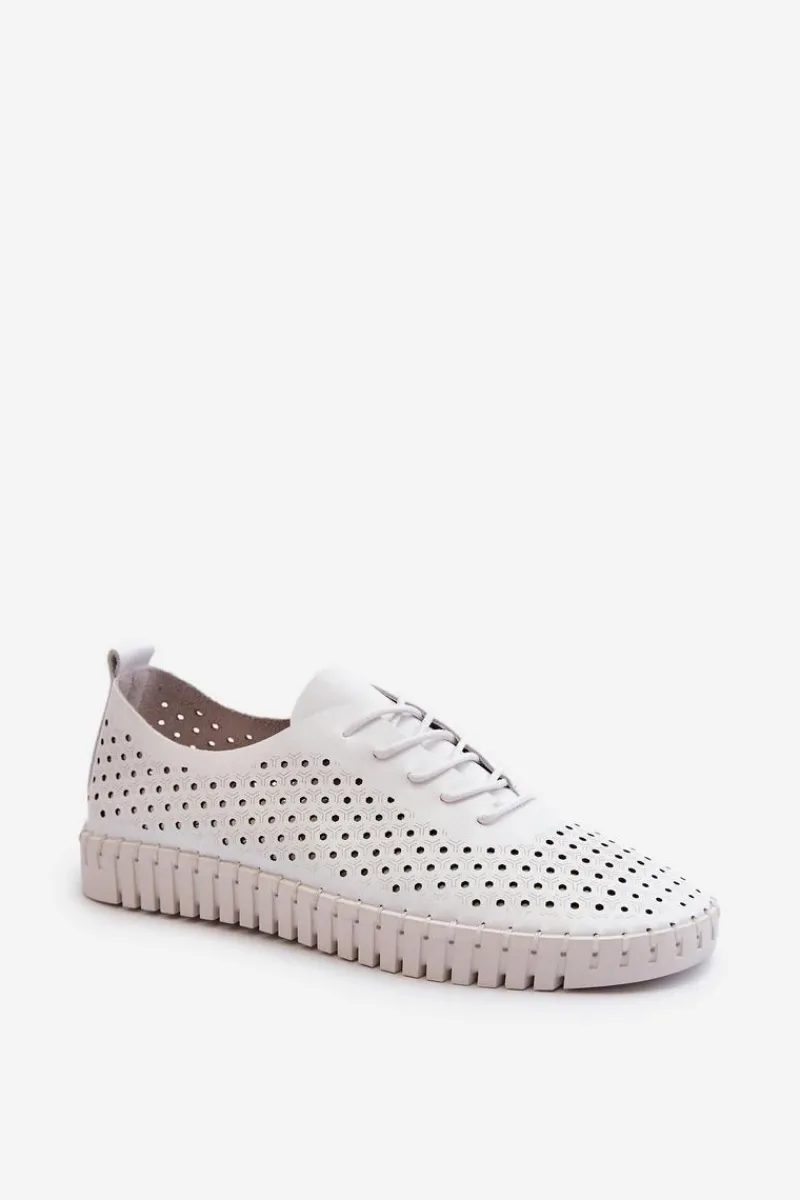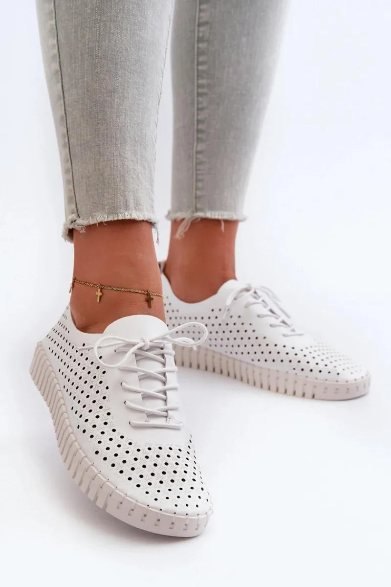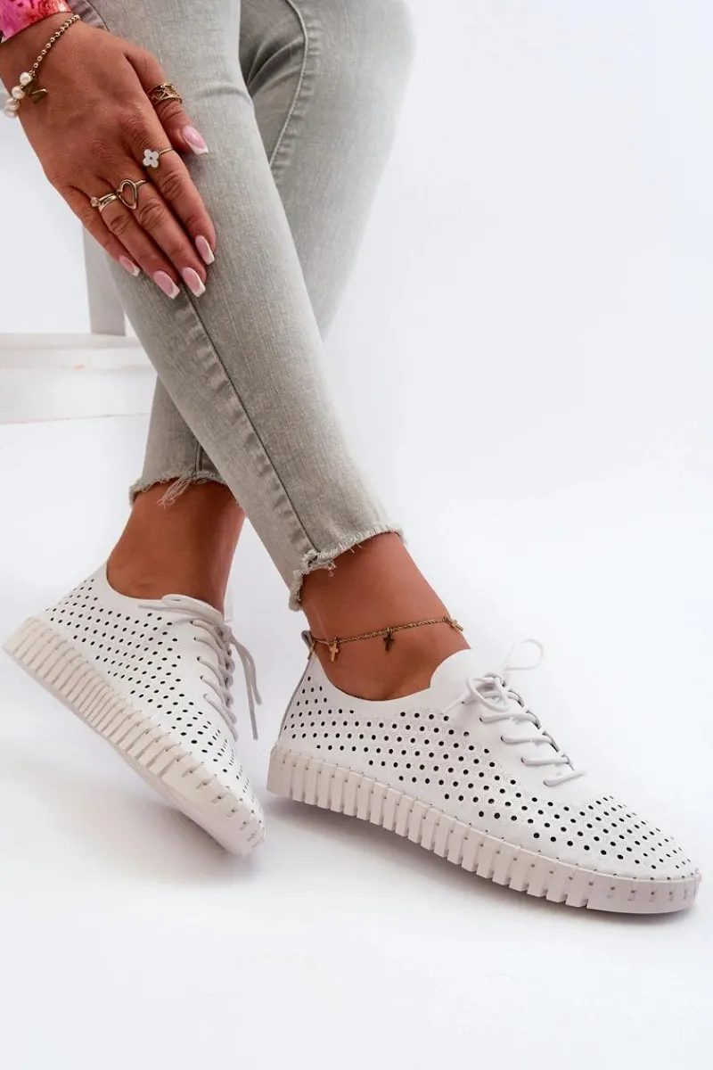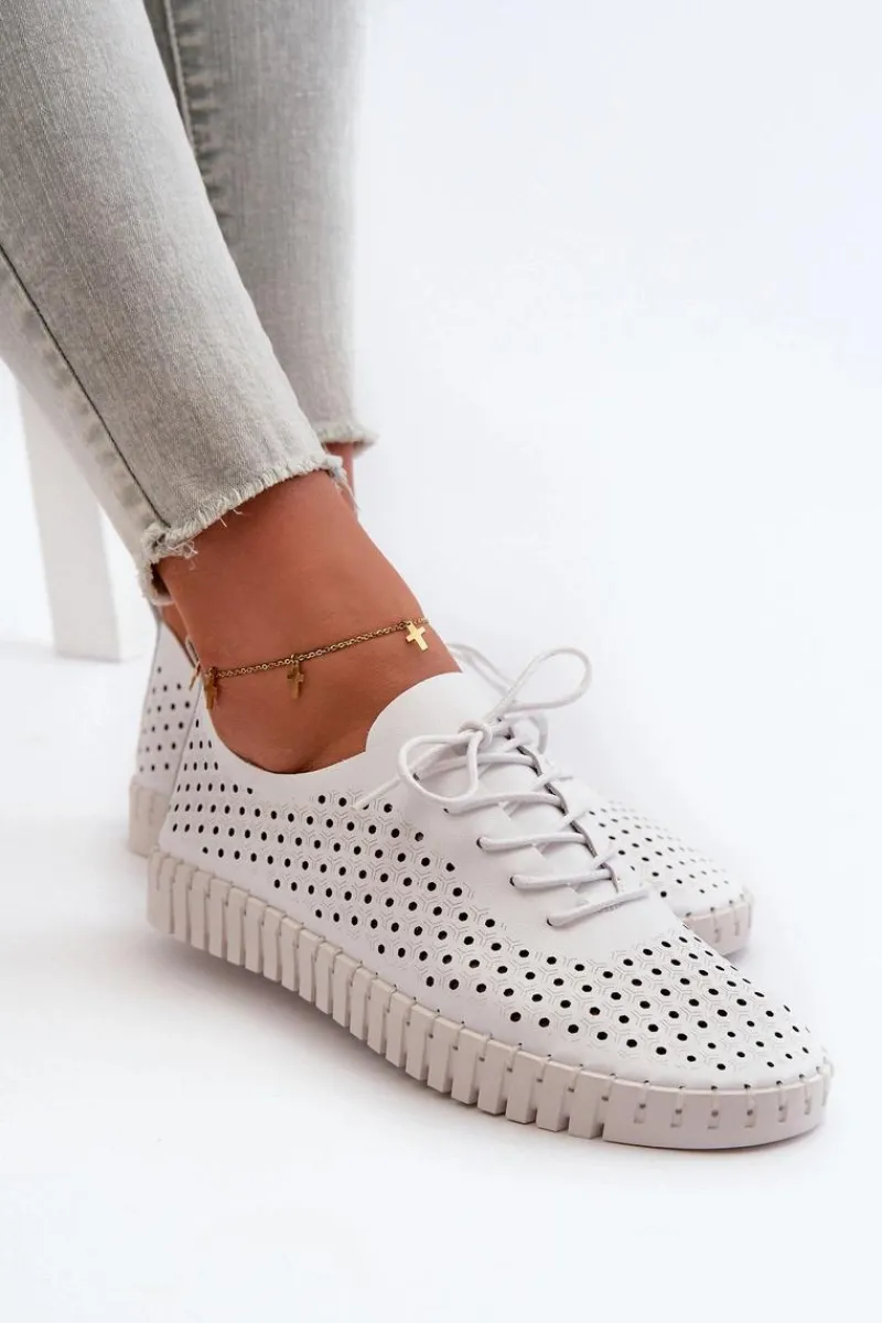 Damskie trampki wykonane ze skóry naturalnej, ozdobione ażurowym wzorem. Te stylowe buty zapewniają komfort i przewiewność, idealne na ciepłe dni. Doskonałe połączenie mody i funkcjonalności, świetnie sprawdzą się w codziennych stylizacjach. Przy wyborze rozmiaru prosimy sugerować się tabelą rozmiarów.