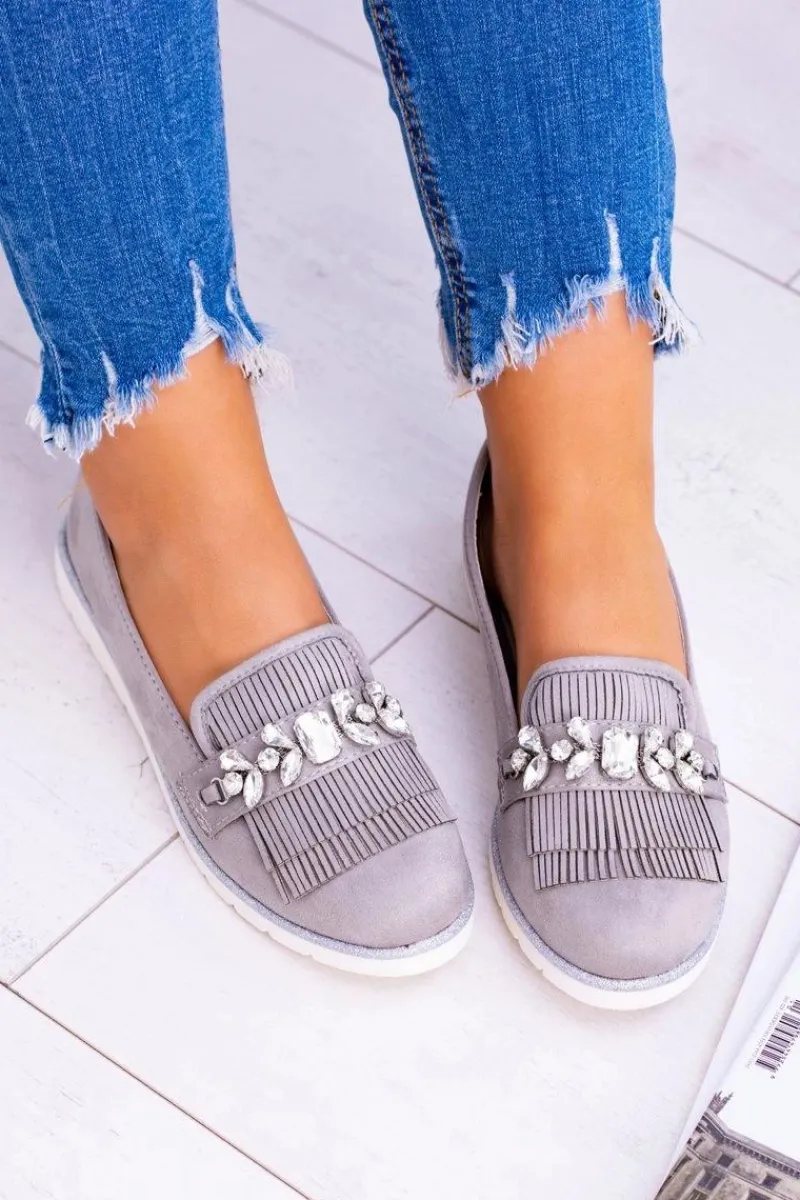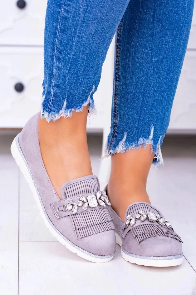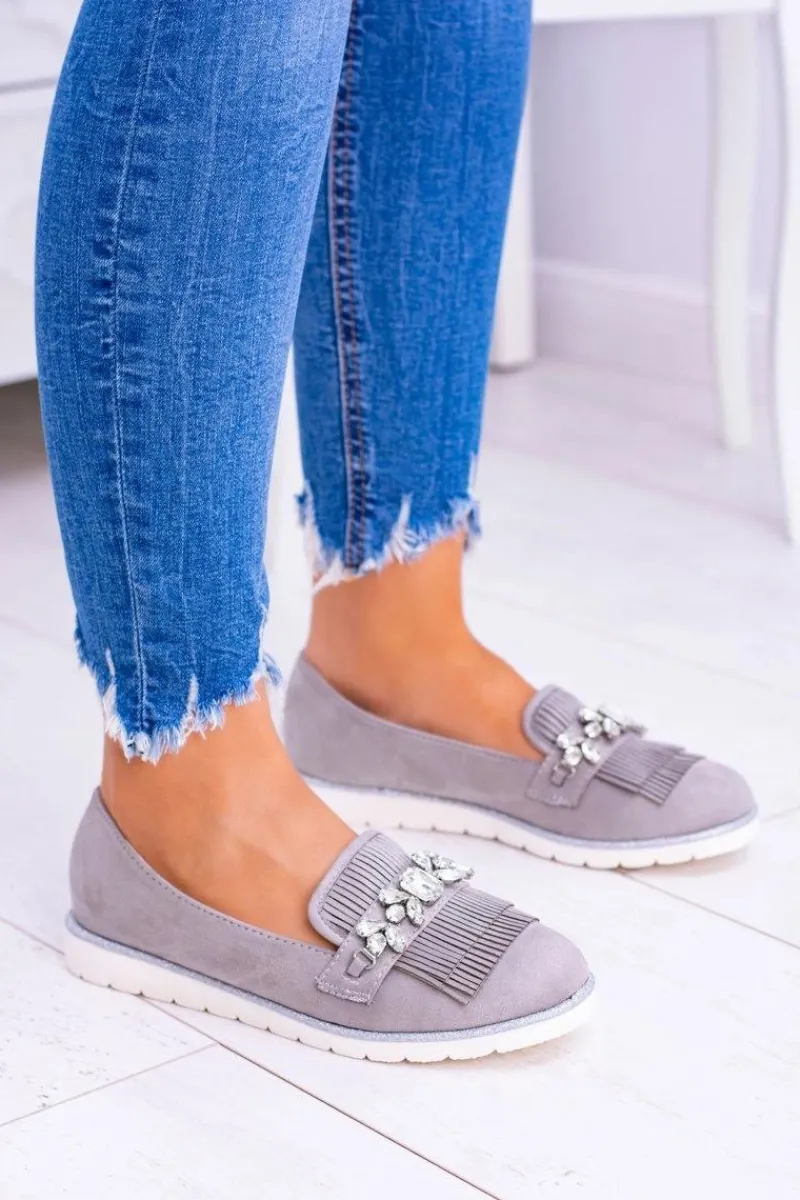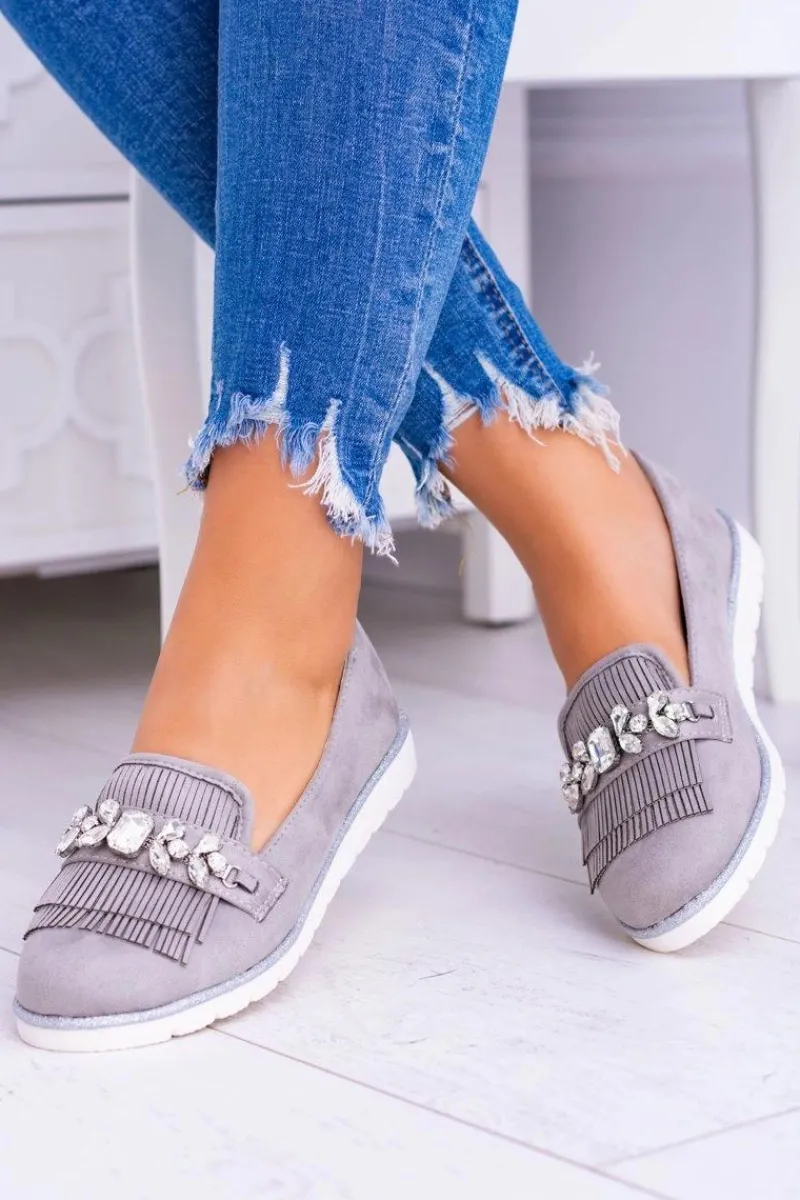 Online Boto Szare Zamszowe Mokasyny z Kryształami Vivaro