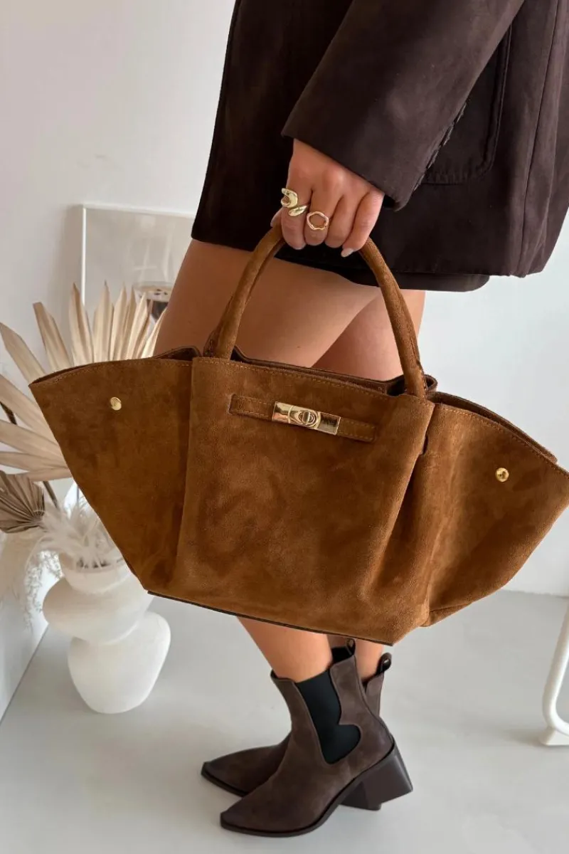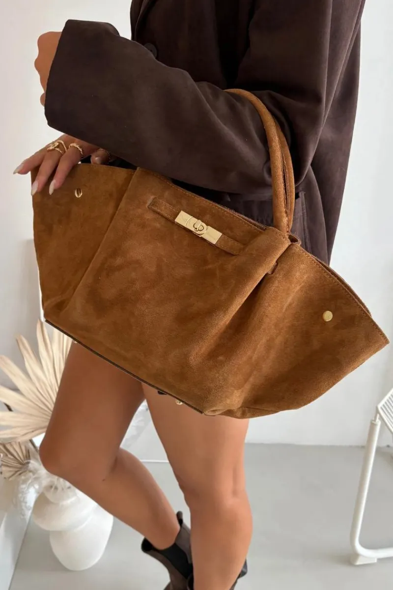 Stylowa torebka wykonana z naturalnego zamszu to elegancki i ponadczasowy dodatek, który doskonale sprawdzi się w codziennych stylizacjach. Model zapinany na zamek gwarantuje bezpieczeństwo i wygodę użytkowania. Torebka posiada wygodne uchwyty oraz odpinany, regulowany pasek, dzięki czemu można nosić ją na różne sposoby – w dłoni lub na ramieniu. To klasyczny, a zarazem modny model, który doda uroku każdej stylizacji.