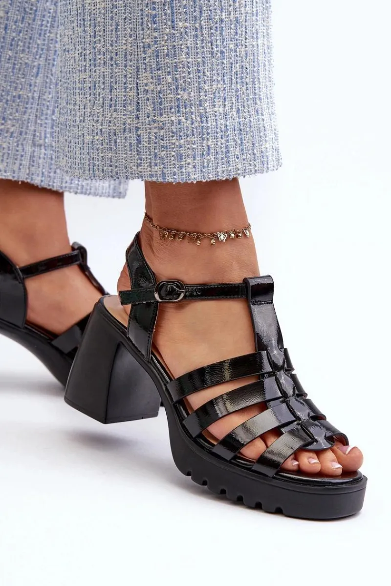 Online Buty damskie Vinceza Lakierowane Skórzane Sandały Damskie Na Słupku Vinceza 66621 Czarne Czarny
