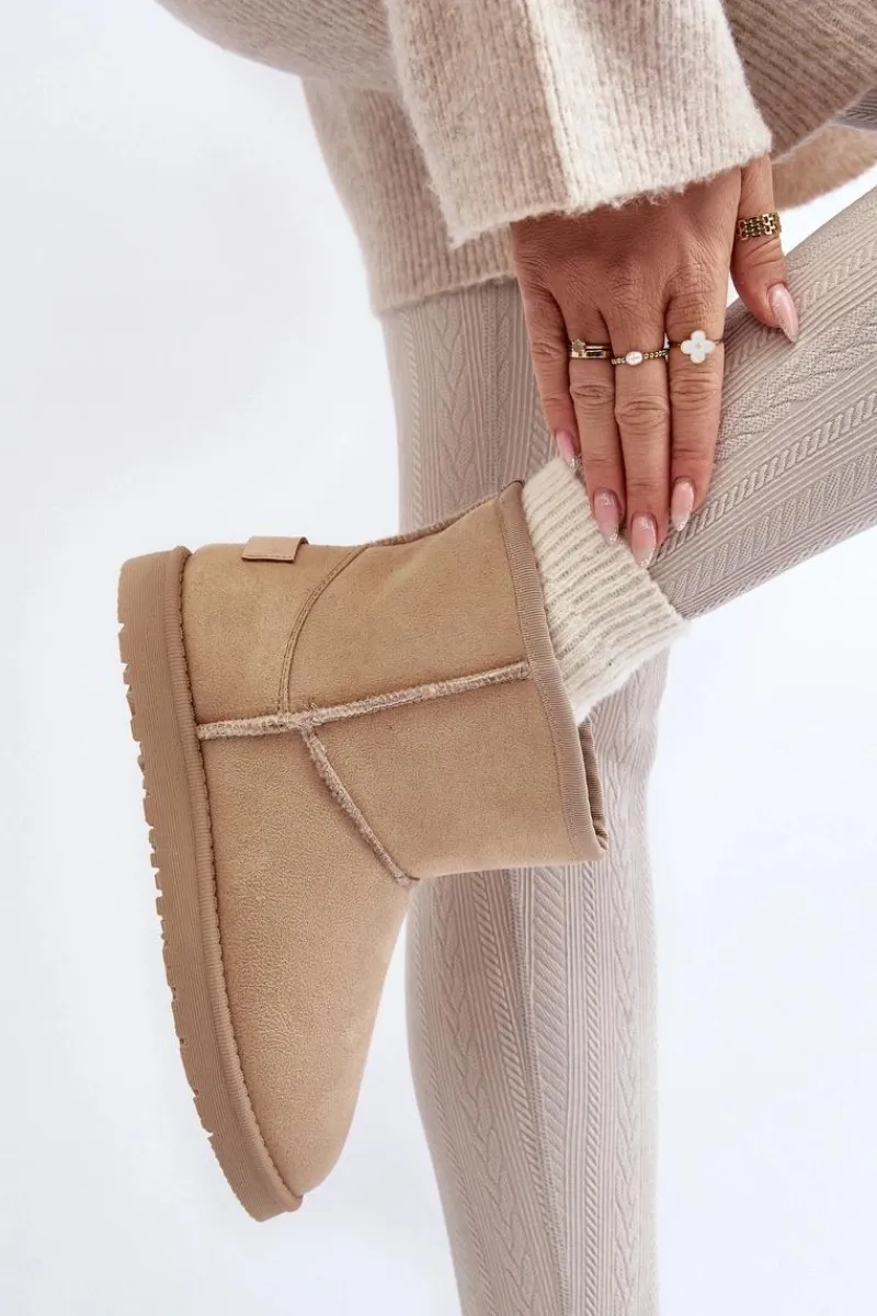 Śniegowce damskie wykonane z eko zamszu. Osadzone na trwałej podeszwie z gumowego tworzywa. Cholewka za kostkę. Ocieplenie futerkiem sprawiają, że są one idealnym wyborem na zimowe dni, chroniąc przed zimnem. Modny fason tego obuwia pozwala zestawić je z różnorodnymi stylizacjami. Koniecznie powinnaś je mieć! Przy wyborze rozmiaru prosimy sugerować się tabelą rozmiarów.