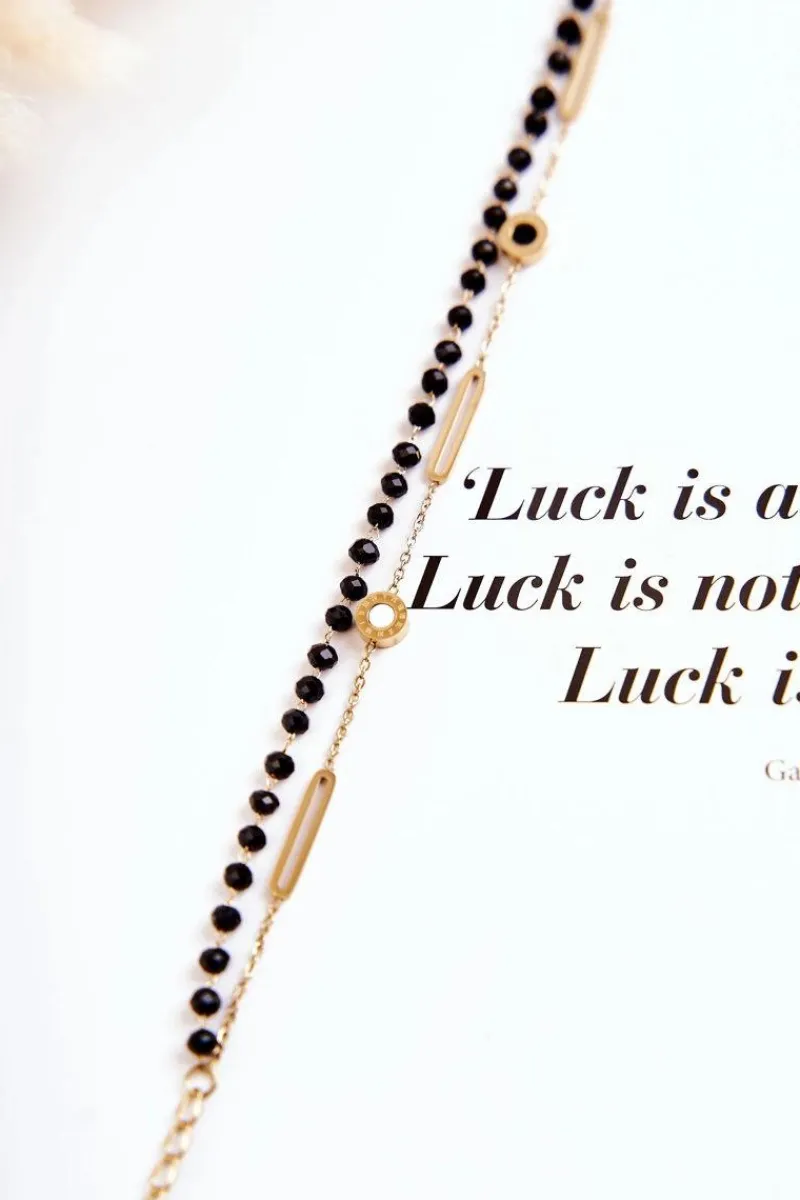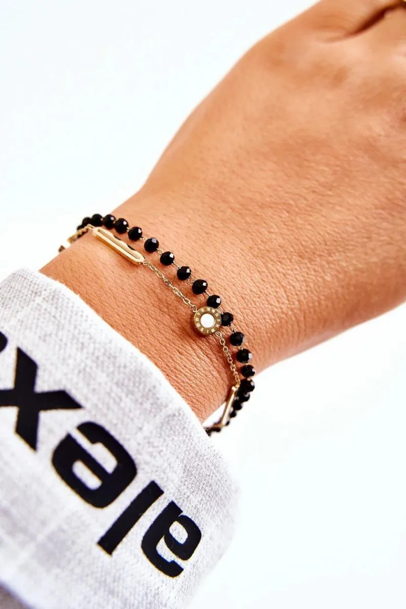 Wyjątkowa bransoletka damska wykonana ze stali nierdzewnej. Posiada możliwość regulacji długości. Ozdoby w postaci małych zegarów oraz koraliki. Bransoletka posiada dwa paski. Prezentuje się niezwykle wyjątkowo. Koniecznie sprawdź także pozostałą naszą ofertę dostępnych modeli biżuterii. Świetny model, musisz go mieć!