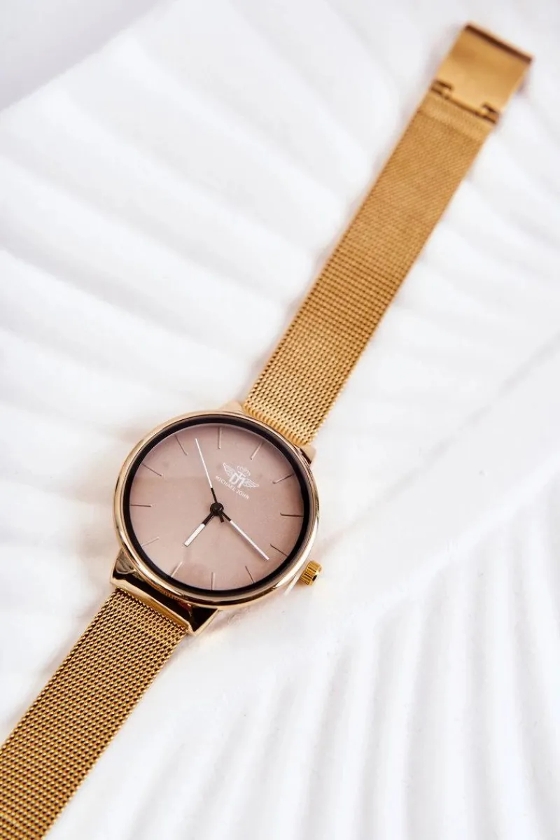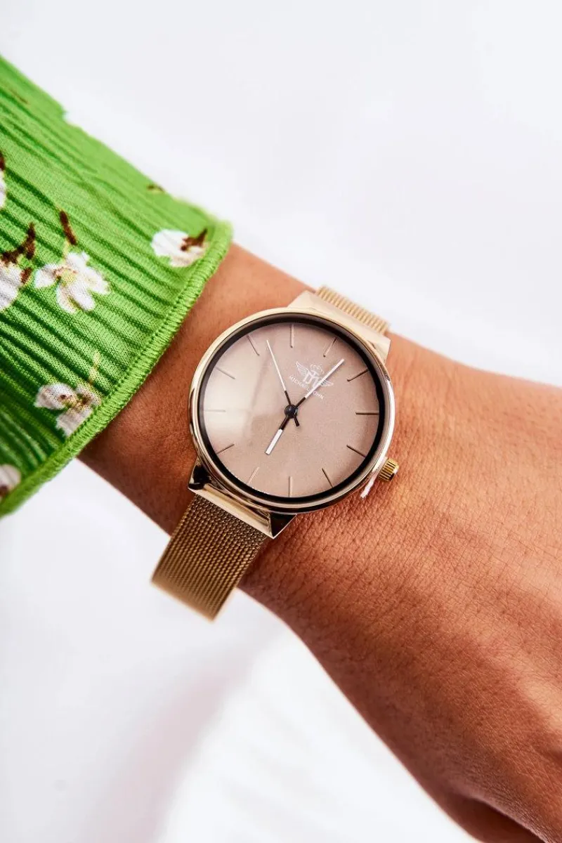 Online Damski Analogowy Zegarek Michel John Beżowo-Złoty Zegarki