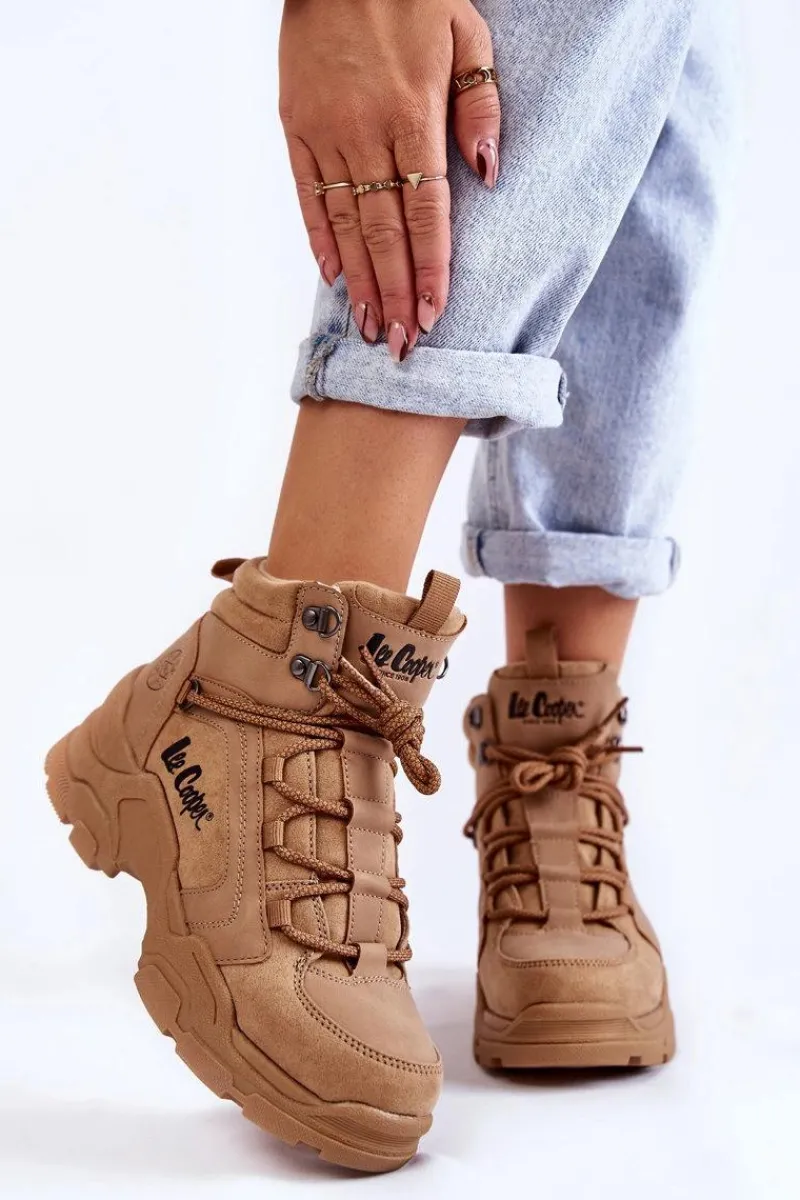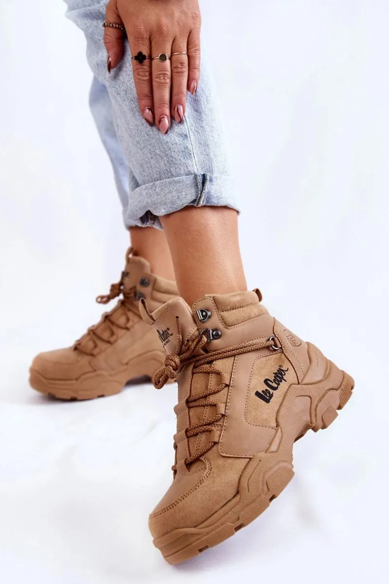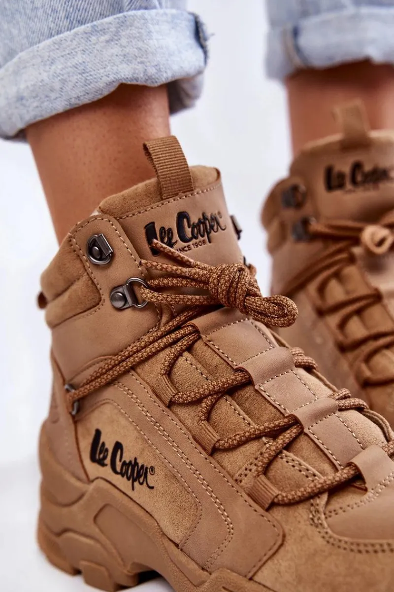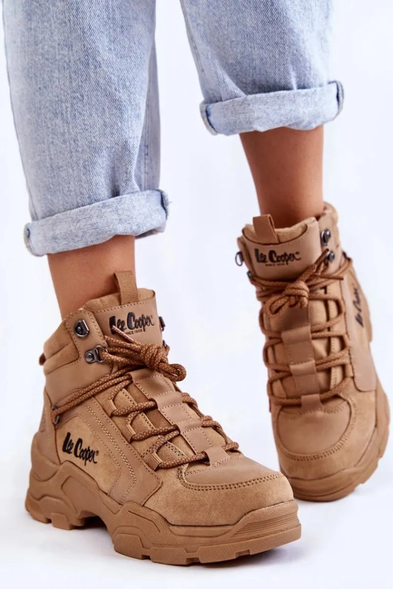 Ten model na pewno przypadnie do gustu niejednej miłośniczce wygodnego i ciepłego obuwia! Botki marki Lee Cooper zostały wykonane z połączenia ekologicznej skóry oraz materiału tekstylnego. Posiadają ocieplenie w postaci delikatnego koca obuwniczego, które ochroni przed zimnem. Model osadzony na płaskim obcasie i platformie. Koniecznie powinnaś je mieć w swojej szafie! Przy wyborze rozmiaru prosimy sugerować się tabelą rozmiarów.