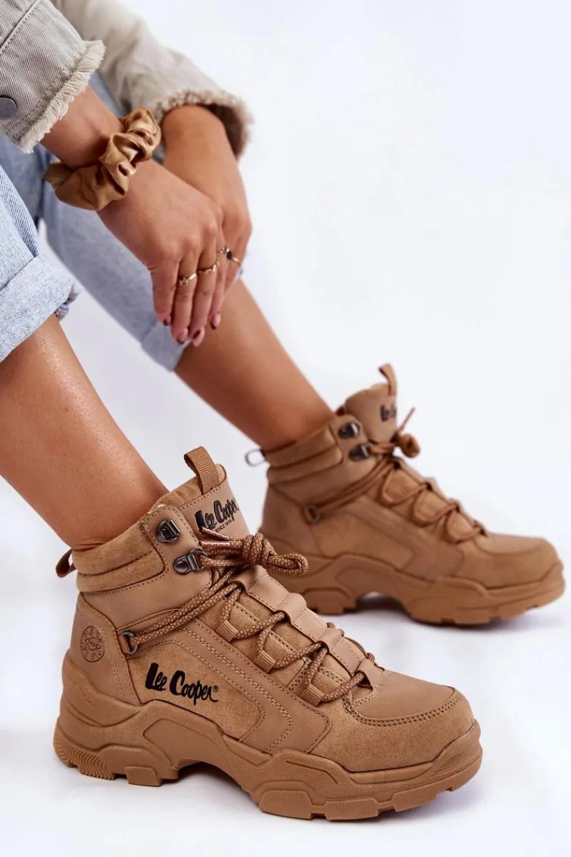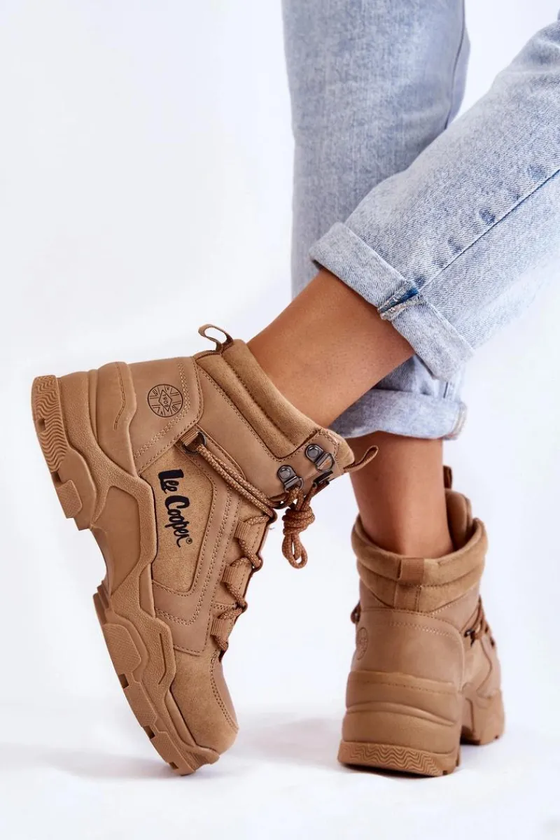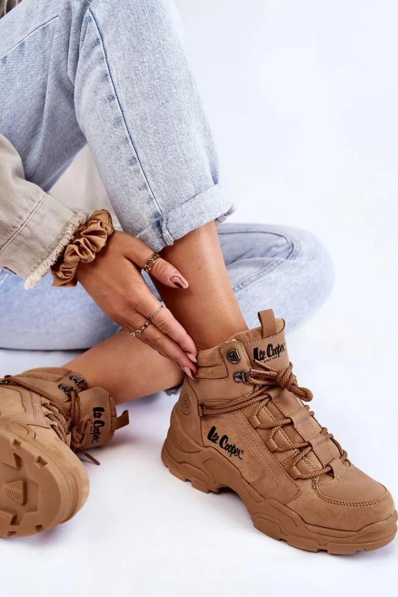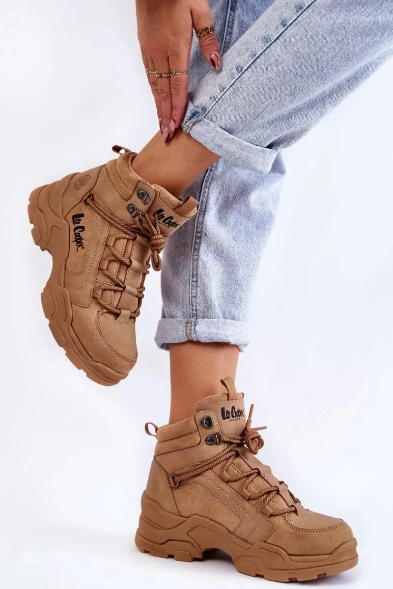 Ten model na pewno przypadnie do gustu niejednej miłośniczce wygodnego i ciepłego obuwia! Botki marki Lee Cooper zostały wykonane z połączenia ekologicznej skóry oraz materiału tekstylnego. Posiadają ocieplenie w postaci delikatnego koca obuwniczego, które ochroni przed zimnem. Model osadzony na płaskim obcasie i platformie. Koniecznie powinnaś je mieć w swojej szafie! Przy wyborze rozmiaru prosimy sugerować się tabelą rozmiarów.