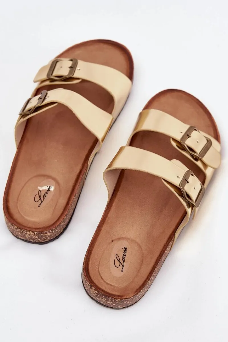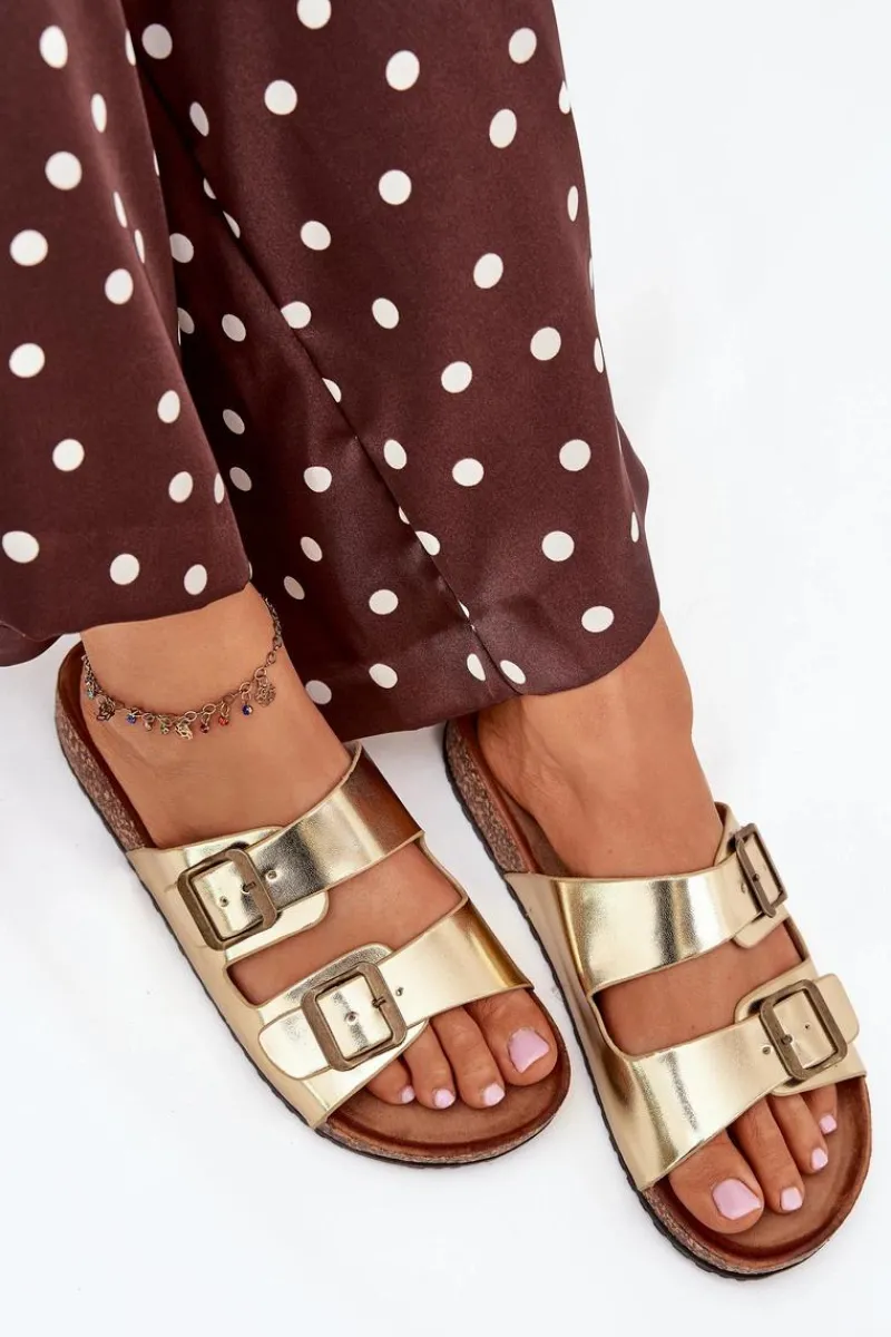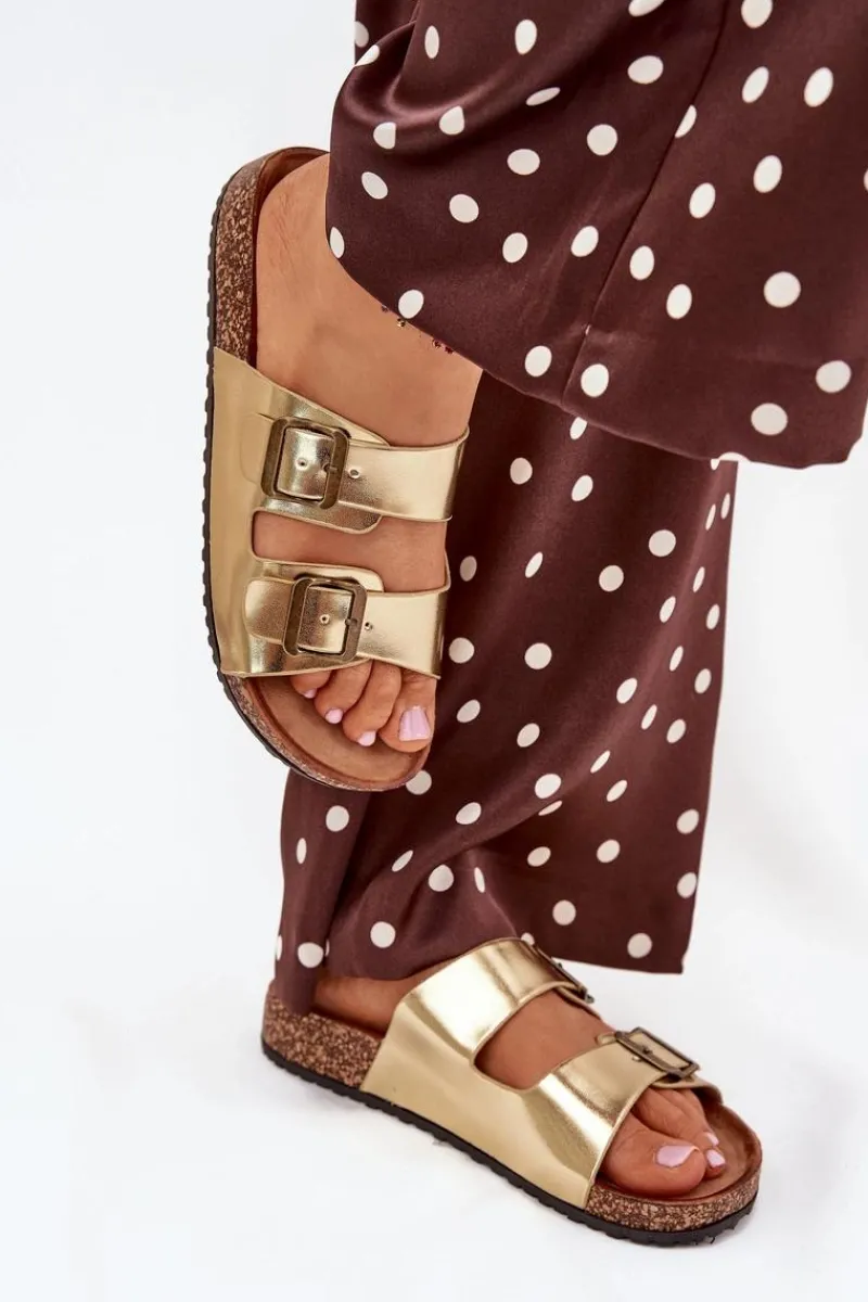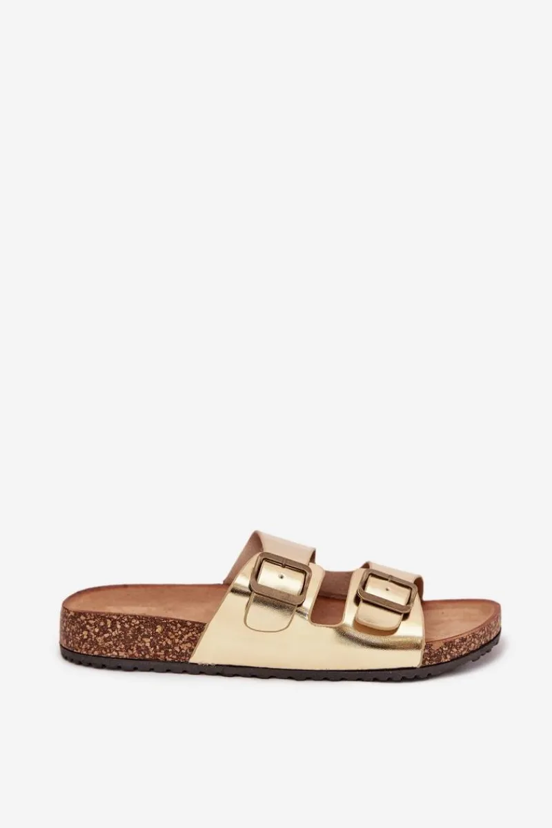 Online Damskie Klapki Na Korkowej Platformie Z Klamrami Złote Vesina Damskie Klapki Korkowe|Klapki Na Platformie
