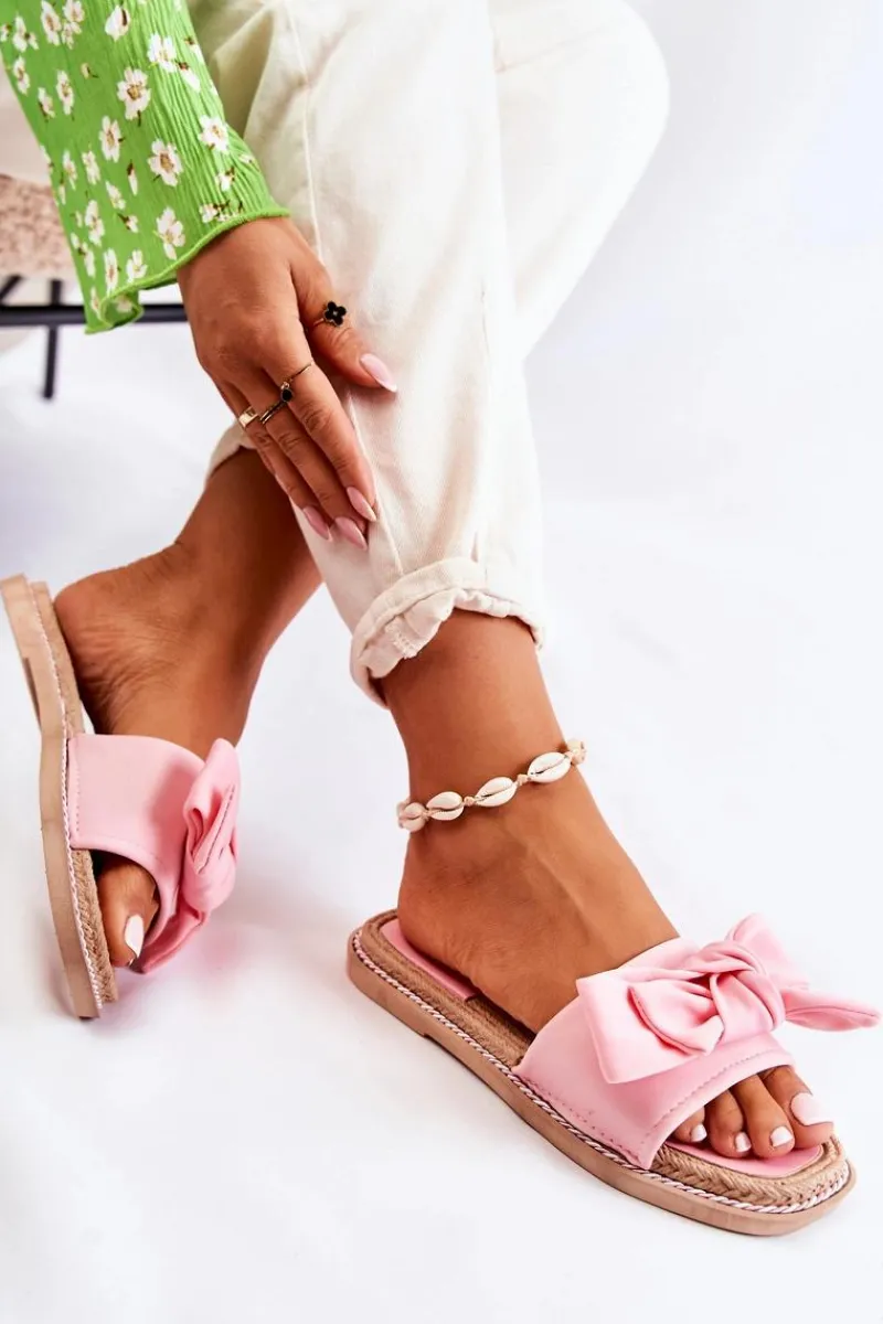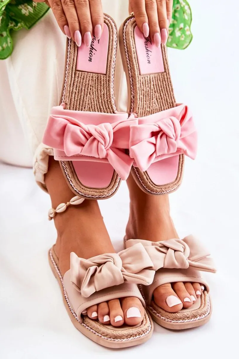 Klasyczne klapki z modną, ozdobną kokardą na przodzie! Wykonane z wierzchu z materiału tekstylnego. Wkładka oraz podeszwa wykonane z gumowego tworzywa. Klapki osadzone na płaskim obcasie, dzięki któremu są bardzo wygodne w użytkowaniu. Modny fason z odkrytym, kwadratowym noskiem. Ozdobny sznureczek wokół podeszwy sprawia, że te klapki wyglądają naprawdę wyjątkowo! Tego modelu nie powinno zabraknąć w Twojej szafie! Przy wyborze rozmiaru prosimy sugerować się tabelą rozmiarów.