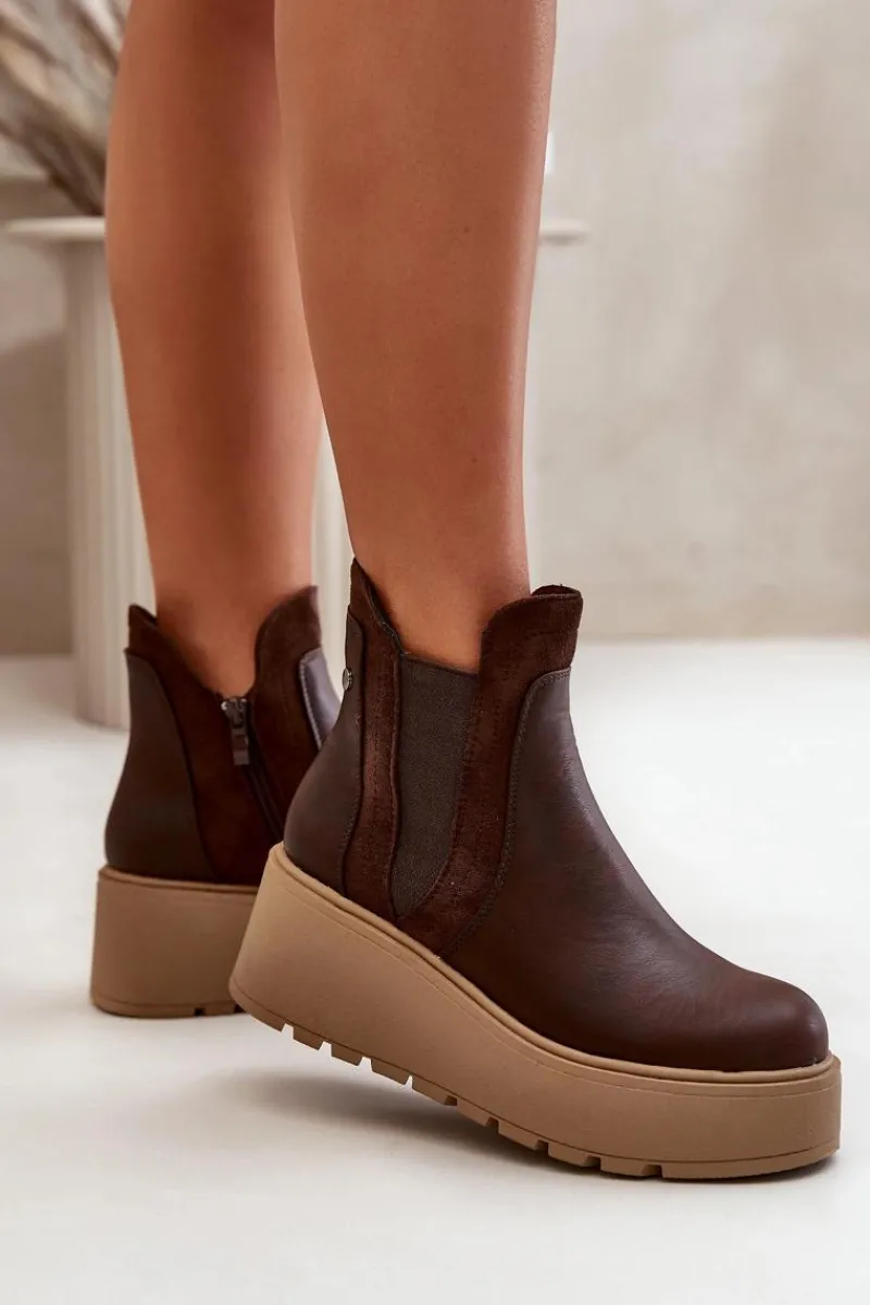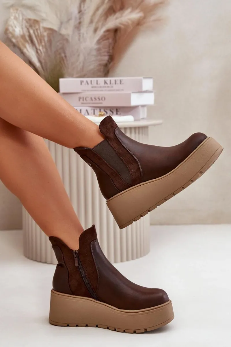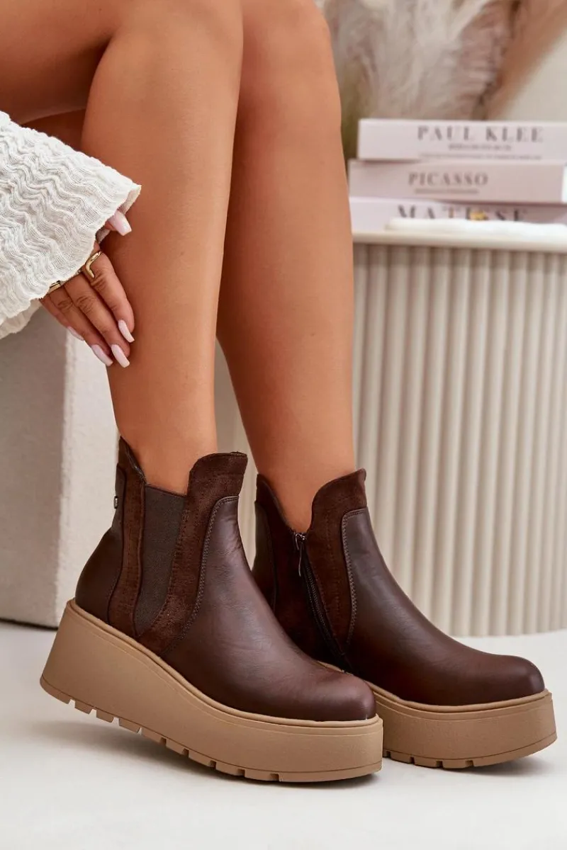 Botki damskie wykonane z eko skóry, osadzone na platformie i koturnie, to połączenie stylu i wygody. Praktyczne zapięcie na zamek ułatwia zakładanie, a wnętrze ocieplone kocem obuwniczym zapewnia ciepło i komfort w chłodniejsze dni. Te botki są idealne do codziennych stylizacji, dodając im modnego i eleganckiego wyglądu. Przy wyborze rozmiaru prosimy sugerować się tabelą rozmiarów.