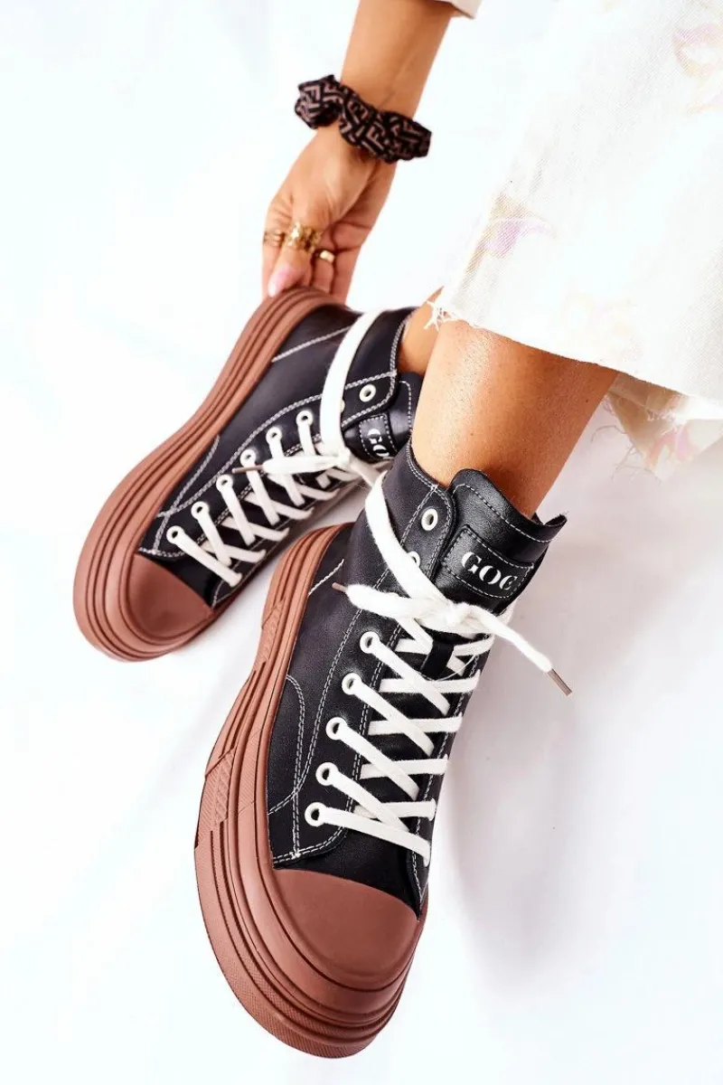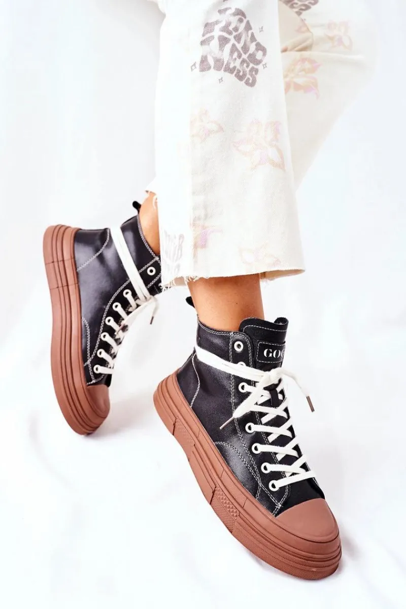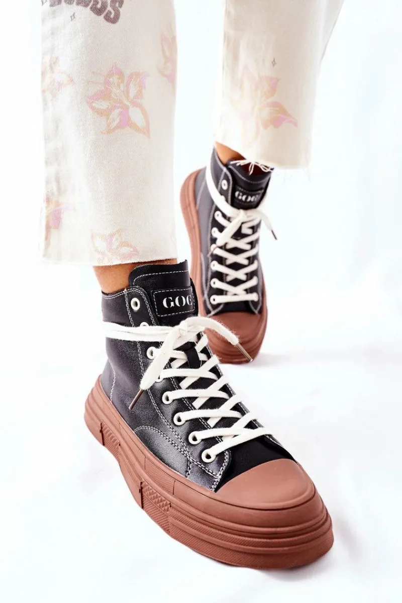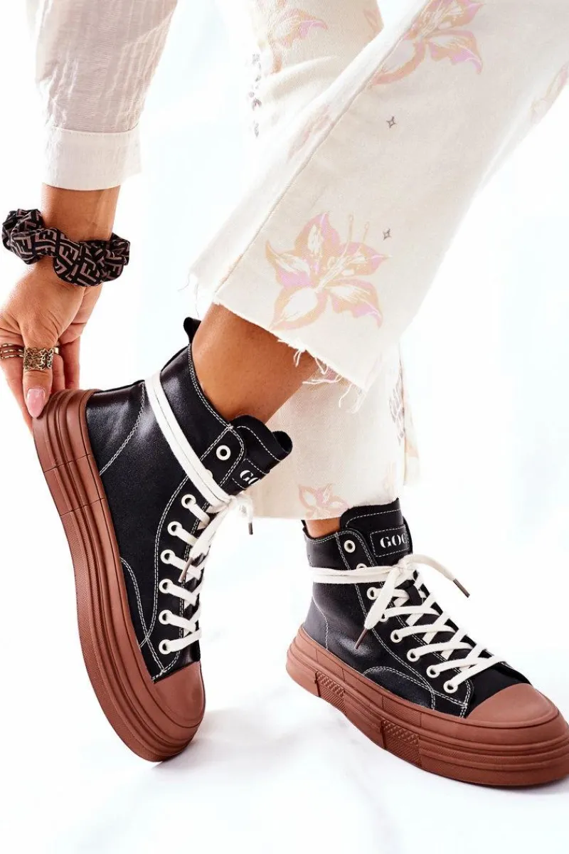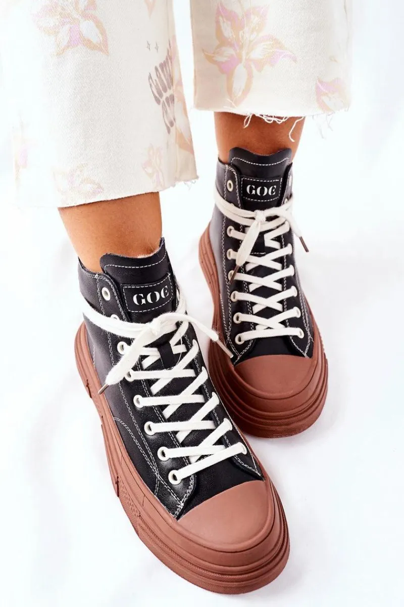 Jeśli szukasz idealnych trampek, to firma GOE ma coś specjalnego! Wysokie trampki, ocieplone wewnątrz kożuszkiem, sięgające aż za kostki. Model klasycznie sznurowany. Buty w całości zostały wykonane z naturalnej skóry licowej. Góra cholewki delikatnie docieplona grubym, sztucznym futerkiem. Dodatkowym atutem jest solidna, antypoślizgowa podeszwa. Przy wyborze rozmiaru prosimy sugerować się tabelą rozmiarów.