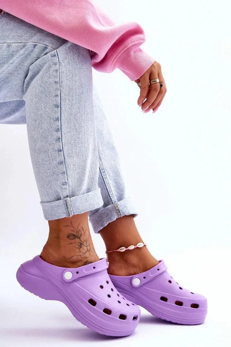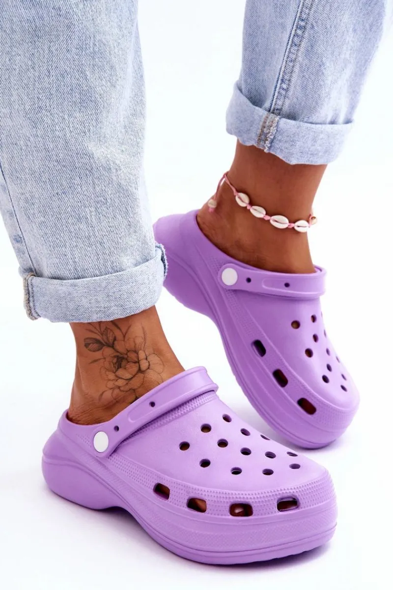 Damskie klapki wykonane z wysokojakościowego, piankowego tworzywa. Wkładka z wypustkami sprawia, że stopy nie będą już takie zmęczone, nawet po całym dniu użytkowania. Ruchomy paseczek zabezpiecza przed przesuwaniem się stopy. Buty zostały osadzone na masywnym obcasie oraz platformie. Idealny model do pracy w ogrodzie czy użytkowania w domu zamiast papci. Otwory w cholewce pozwalają na odpowiednią wentylację obuwia. Przy wyborze rozmiaru prosimy sugerować się tabelą rozmiarów.