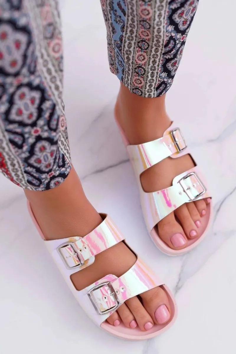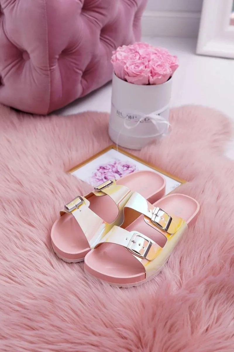 Online Damskie Różowe Profilowane Klapki Opalizujące Astramos Damskie Klapki Damskie Klasyczne