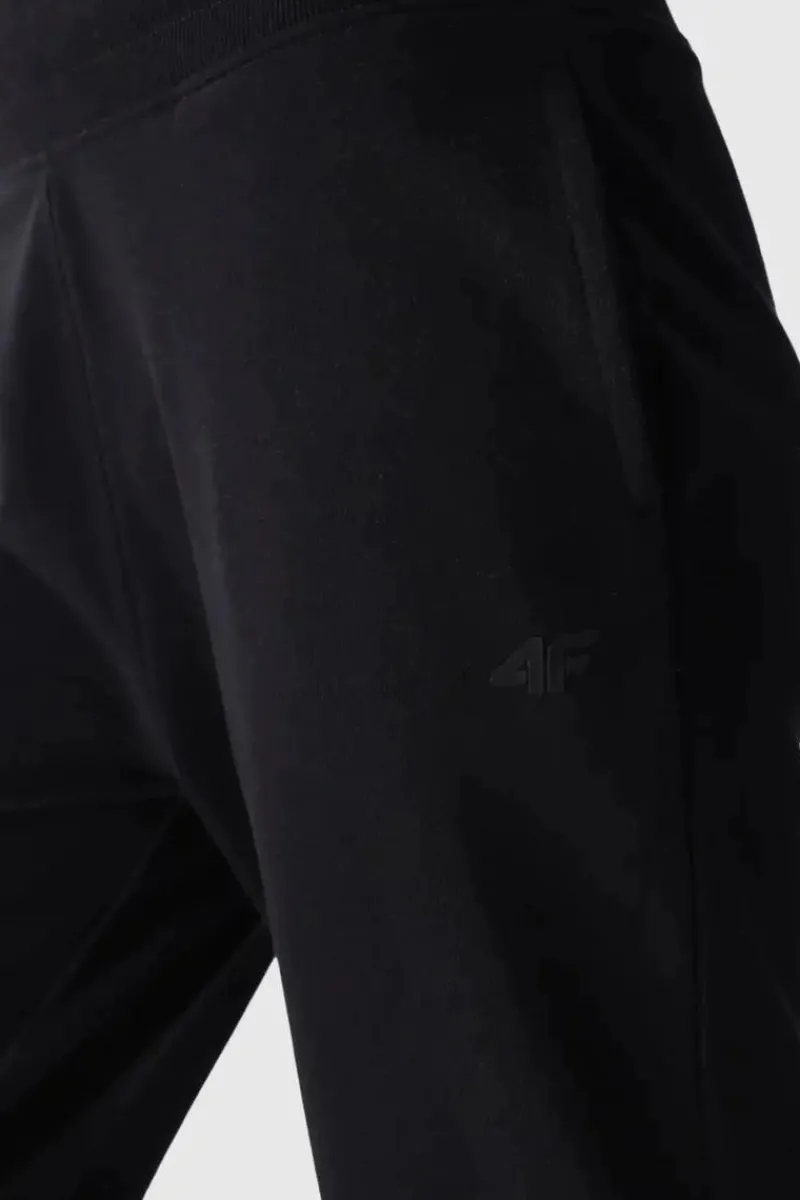 Spodnie dresowe joggery damskie idealnie sprawdzą się jako element zarówno casualowych, jak i sportowych stylizacji na co dzień. Posiadają krój regular, który wygodnie dopasowuje się do sylwetki oraz zwężane nogawki zakończone elastycznym ściągaczem. Dzianina dresowa french terry z jednej strony jest gładka, natomiast z drugiej posiada widoczny splot w postaci pętelki. Dzianina w tym splocie jest miękka, bardziej lejąca i cieńsza w dotyku. Spodnie nie posiadają podszycia, dzięki czemu są lżejsze i odpowiednie na cieplejsze dni. Po bokach znajdują się 2 kieszenie otwarte. Elastyczny pas z wewnętrzną regulacją na troki. Dresy 4F dla kobiety są wykonane w 79% z bawełny, dzięki czemu są miękkie, trwałe i przyjemne w dotyku. Dodatek poliestru (21%) sprawia, że materiał utrzymuje fason i jest odporny na zużycie nawet przez wiele sezonów.
