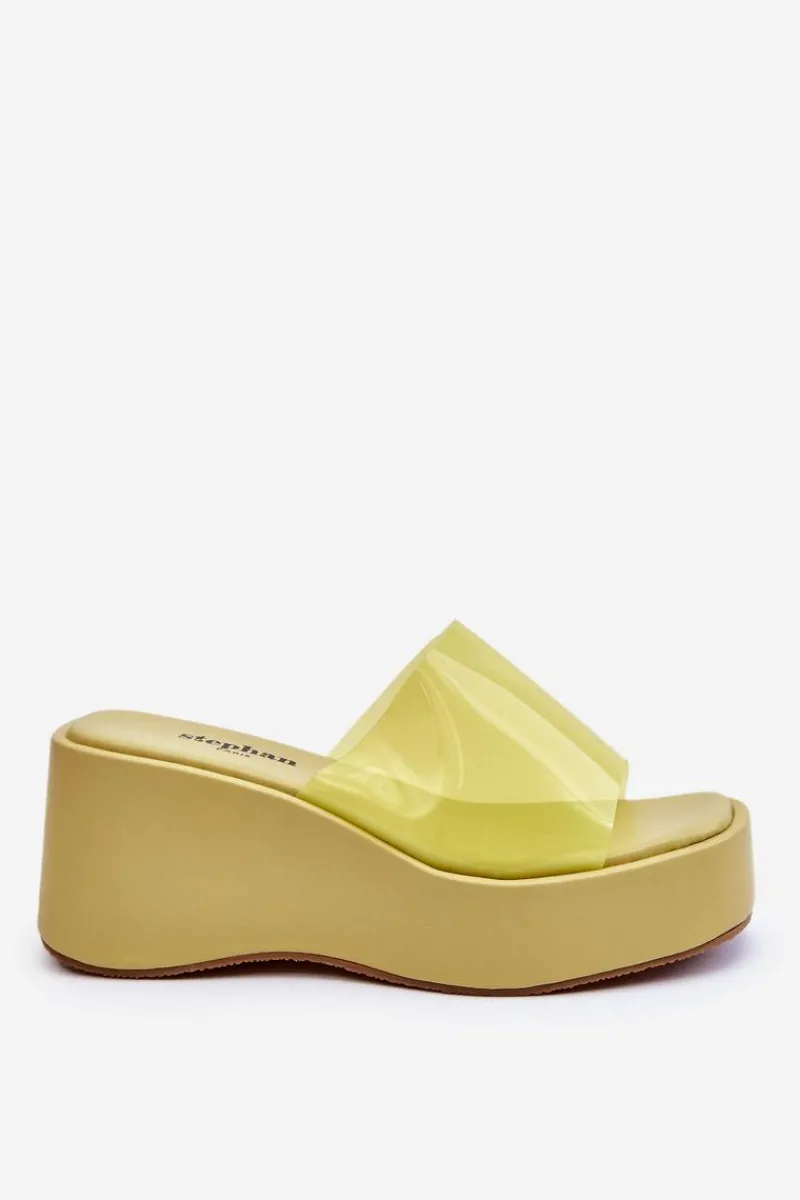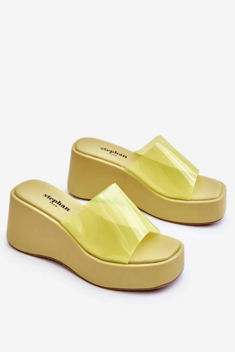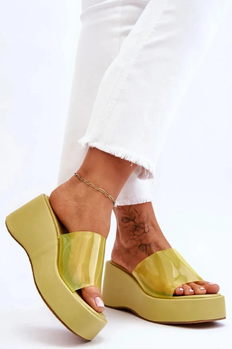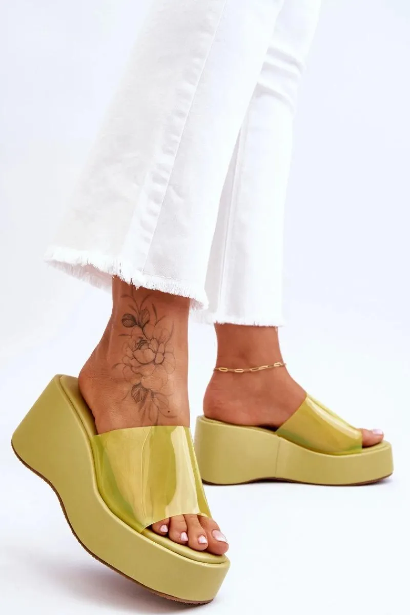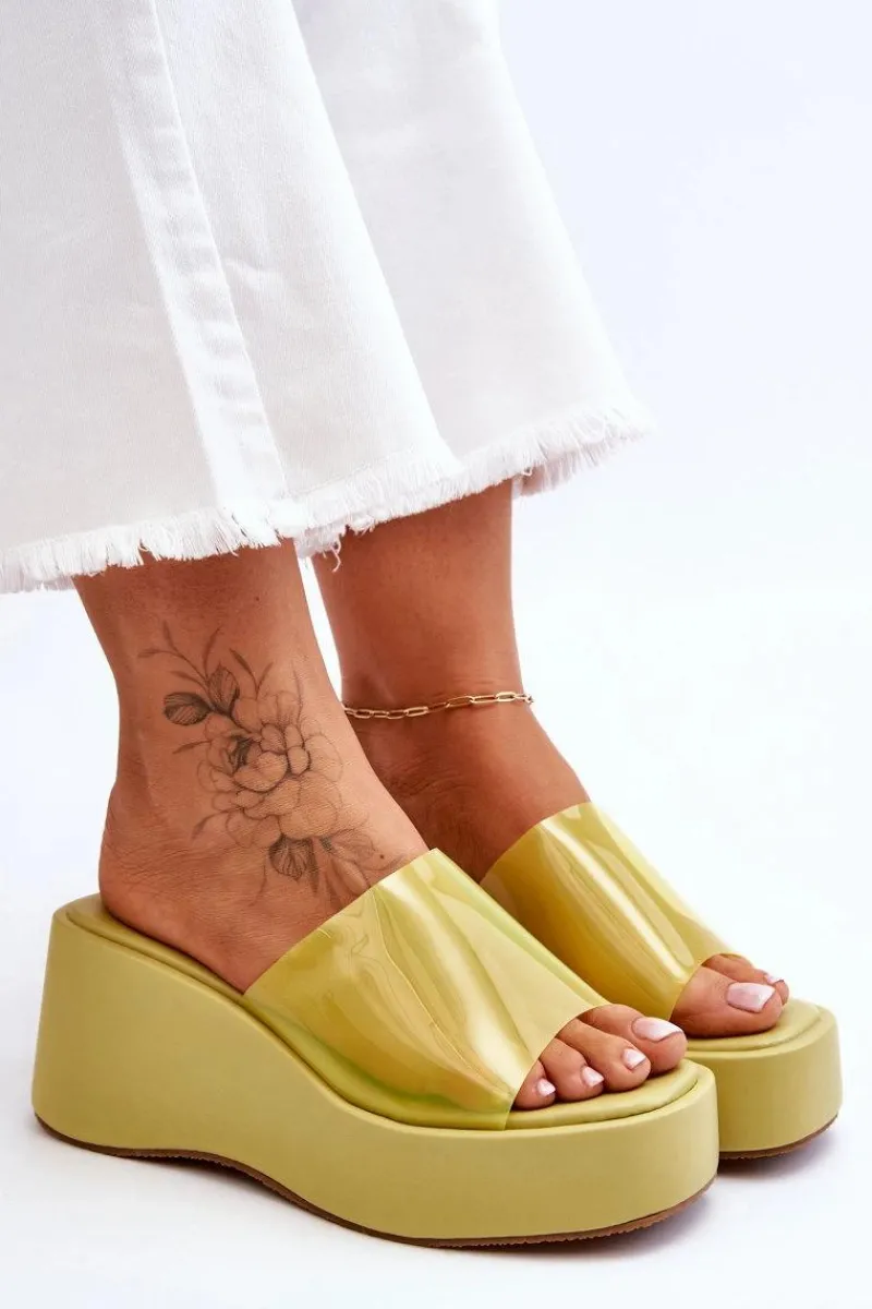 Wyjątkowe, damskie klapki na masywnej platformie i koturnie. Wierzch został wykonany z transparentnego tworzywa sztucznego. Miękka wkładka zapewni wygodne użytkowanie obuwia. Model klasyczny, wsuwany. Z tymi klapkami na pewno stworzysz wiele ciekawych, letnich stylizacji! Przy wyborze rozmiaru prosimy sugerować się tabelą rozmiarów.