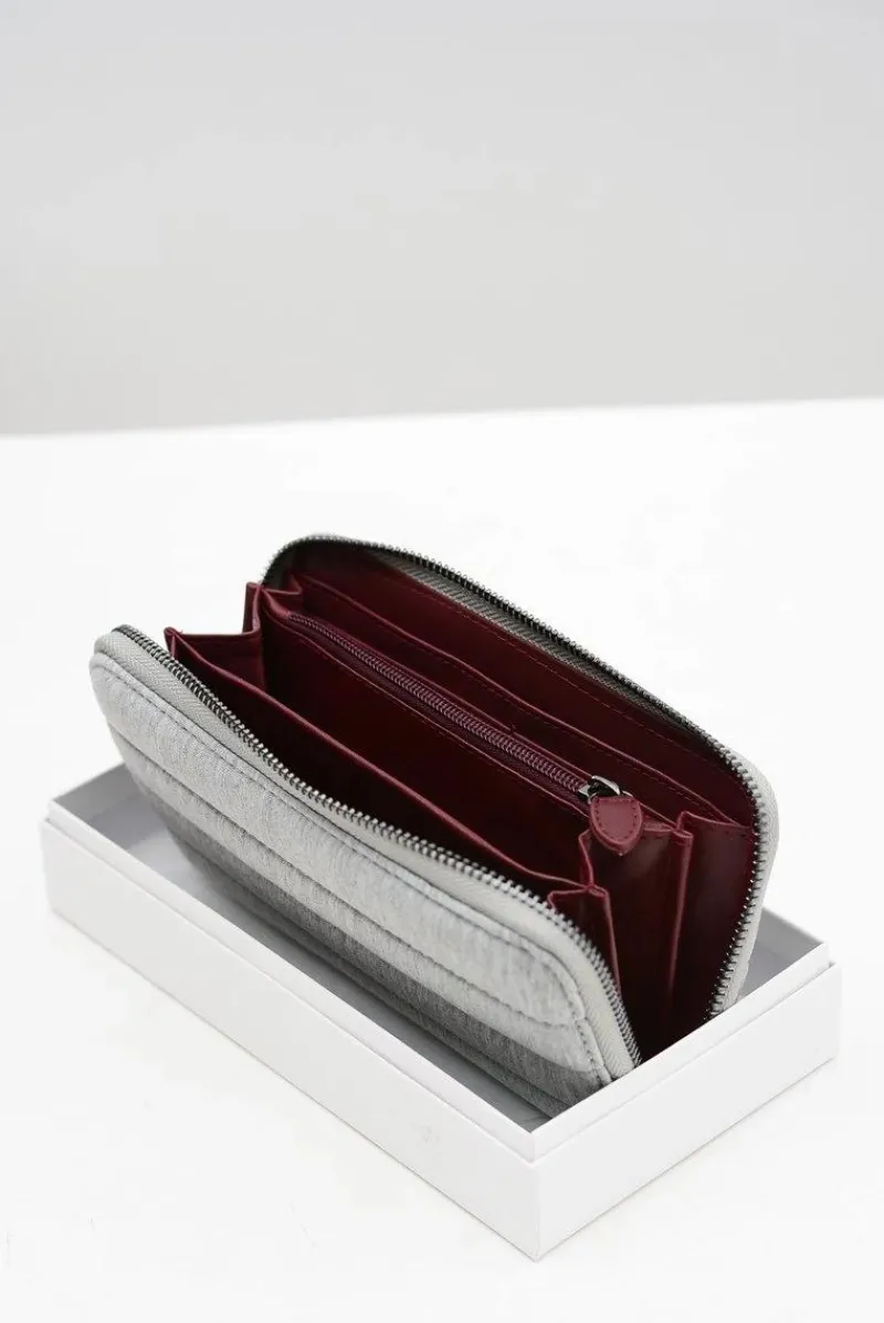 Dopełnieniem każdej kobiecej stylizacji jest nie tylko torebka i buty ale również dobrze dobrany portfel. Portfel wykonany z najwyższej jakości delikatnego materiału tekstylnego. Posiada jedną dużą komorę zapinaną na srebrny suwak, wewnątrz której znajdują się trzy przegródki na banknoty i 10 mniejszych na karty płatnicze oraz inne dokumenty. Dodatkowo jest jeszcze jedna kieszonka zapinana na suwak, idealna na bilon. Nasza propozycja będzie idealnym uzupełnieniem każdej Twojej stylizacji!