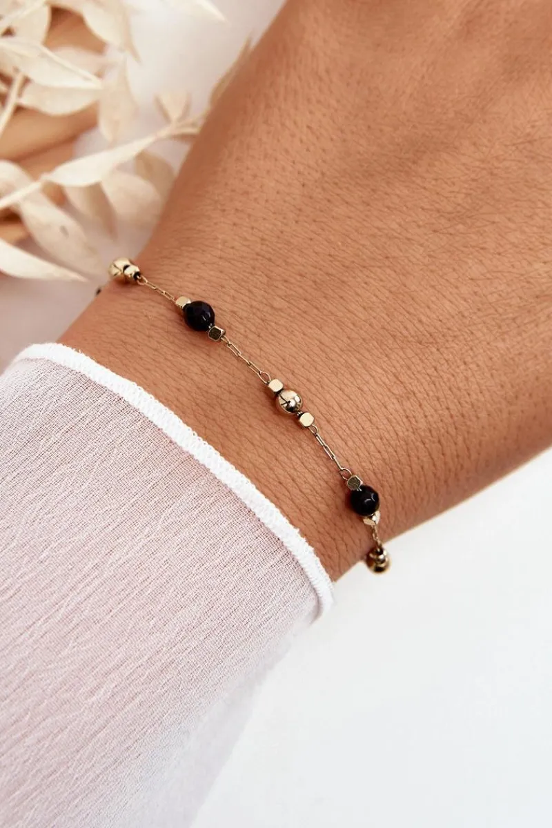 Online Glam Chic Klasyczna Bransoletka Z Czarnymi Koralikami Złota