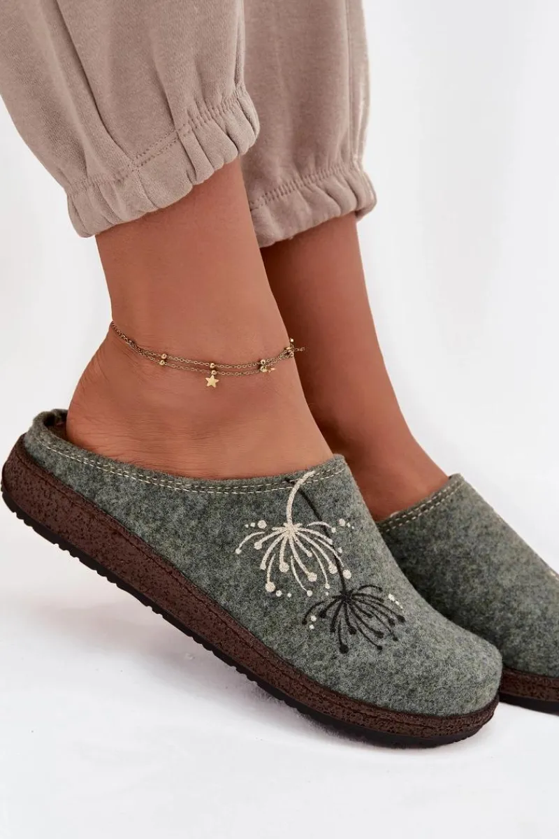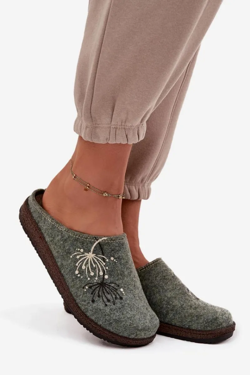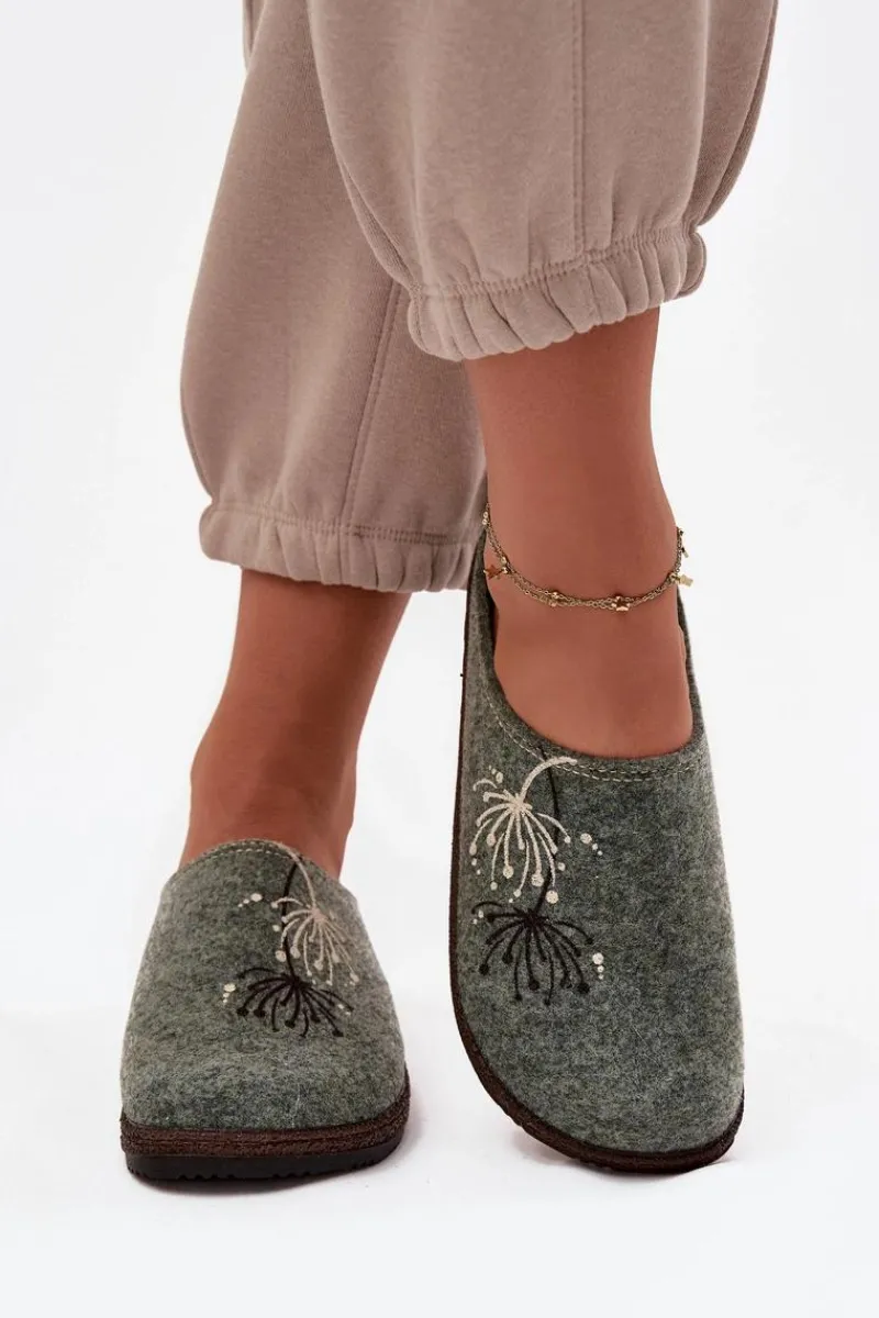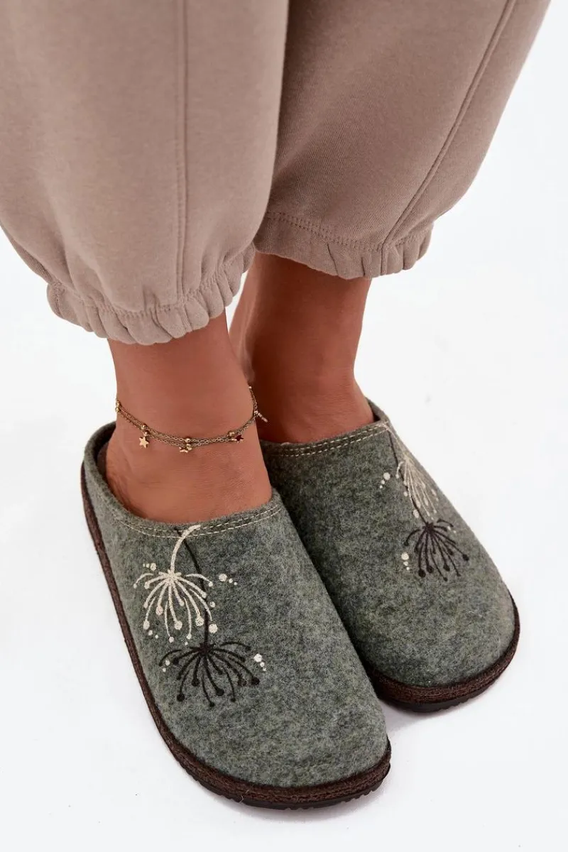 Damskie kapcie wykonane z filcowej tkaniny to lekka i wygodna propozycja do codziennego użytku w domu. Szerokie, zaokrąglone noski zapewniają swobodę ruchów i komfort dla palców, a profilowana filcowa wkładka dopasowuje się do kształtu stopy, wspierając jej naturalne ułożenie. Elastyczna podeszwa gwarantuje stabilność i miękkość przy każdym kroku. To praktyczne i wygodne kapcie, które łączą prostotę z funkcjonalnością, idealne dla kobiet ceniących komfort. Prosimy o skorzystanie z tabeli rozmiarów przy wyborze odpowiedniego rozmiaru.