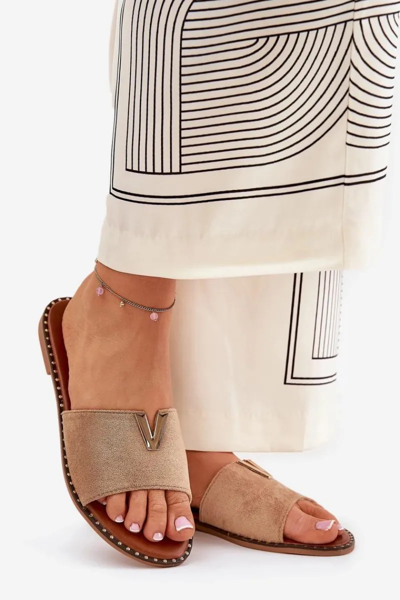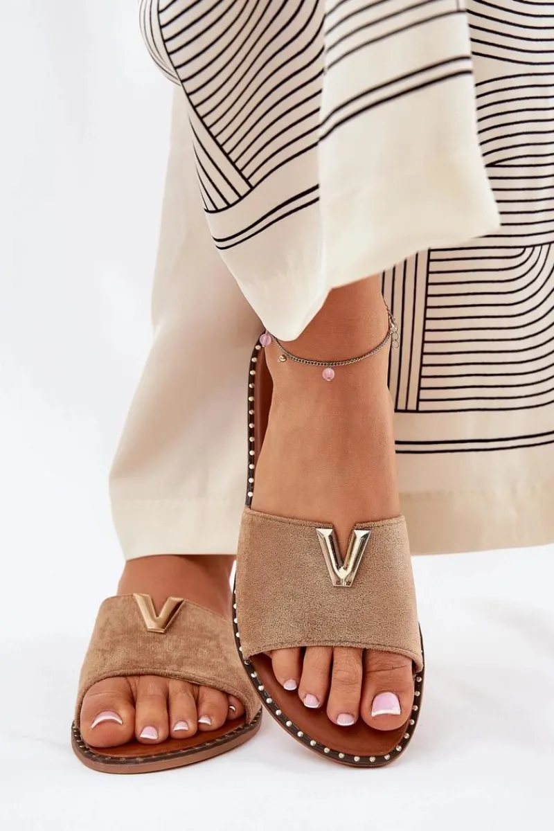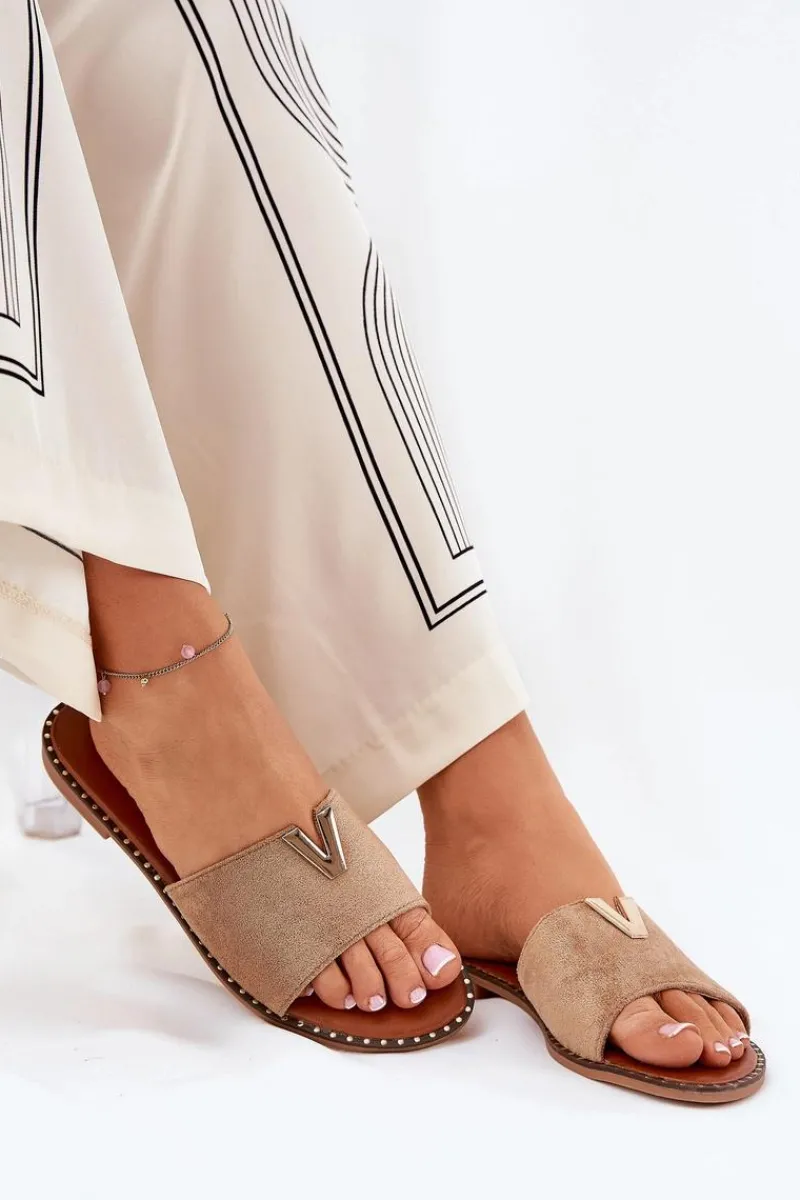 Online Klapki Damskie Na Płaskim Obcasie Z Ozdobnymi Detalami Khaki Saliena Damskie Klapki Damskie Klasyczne