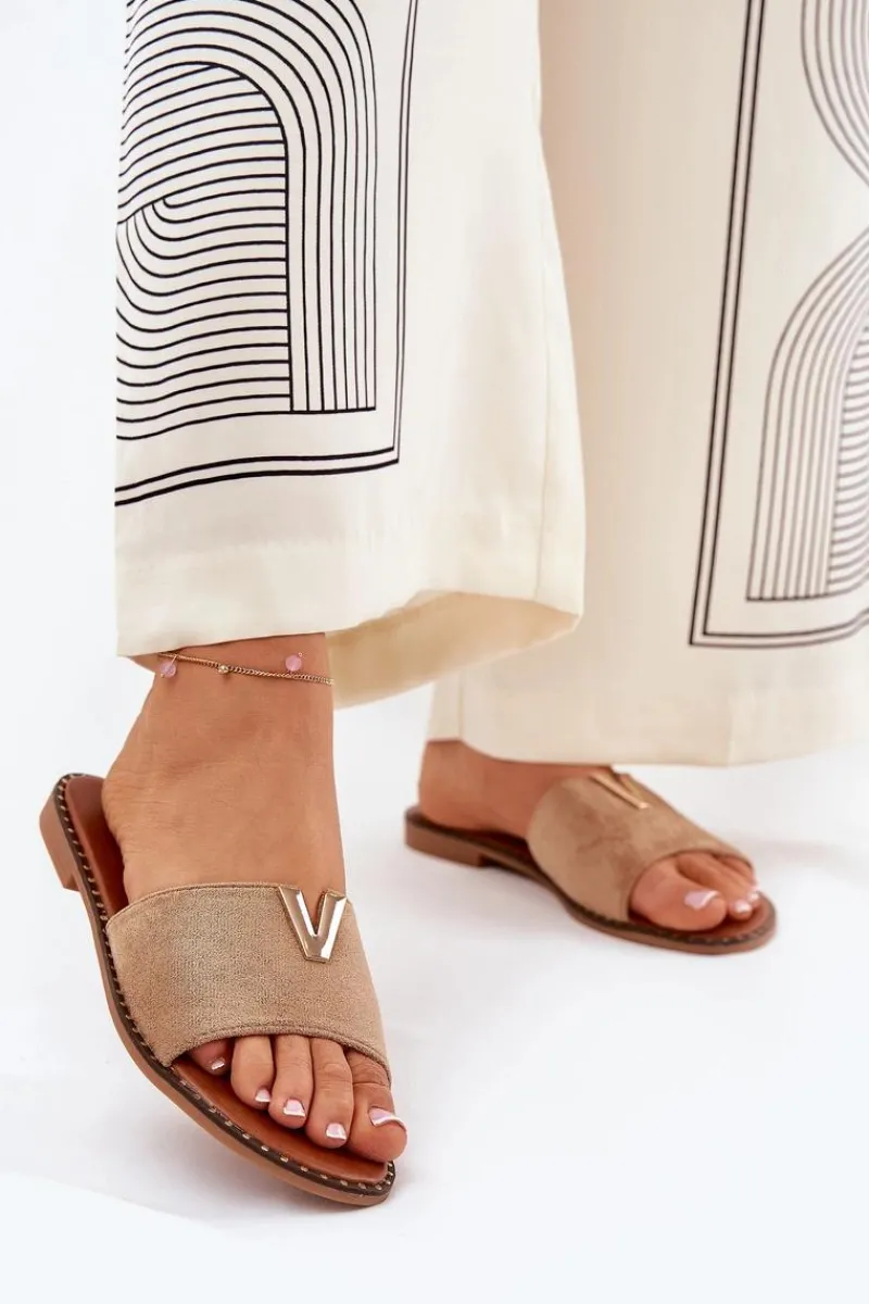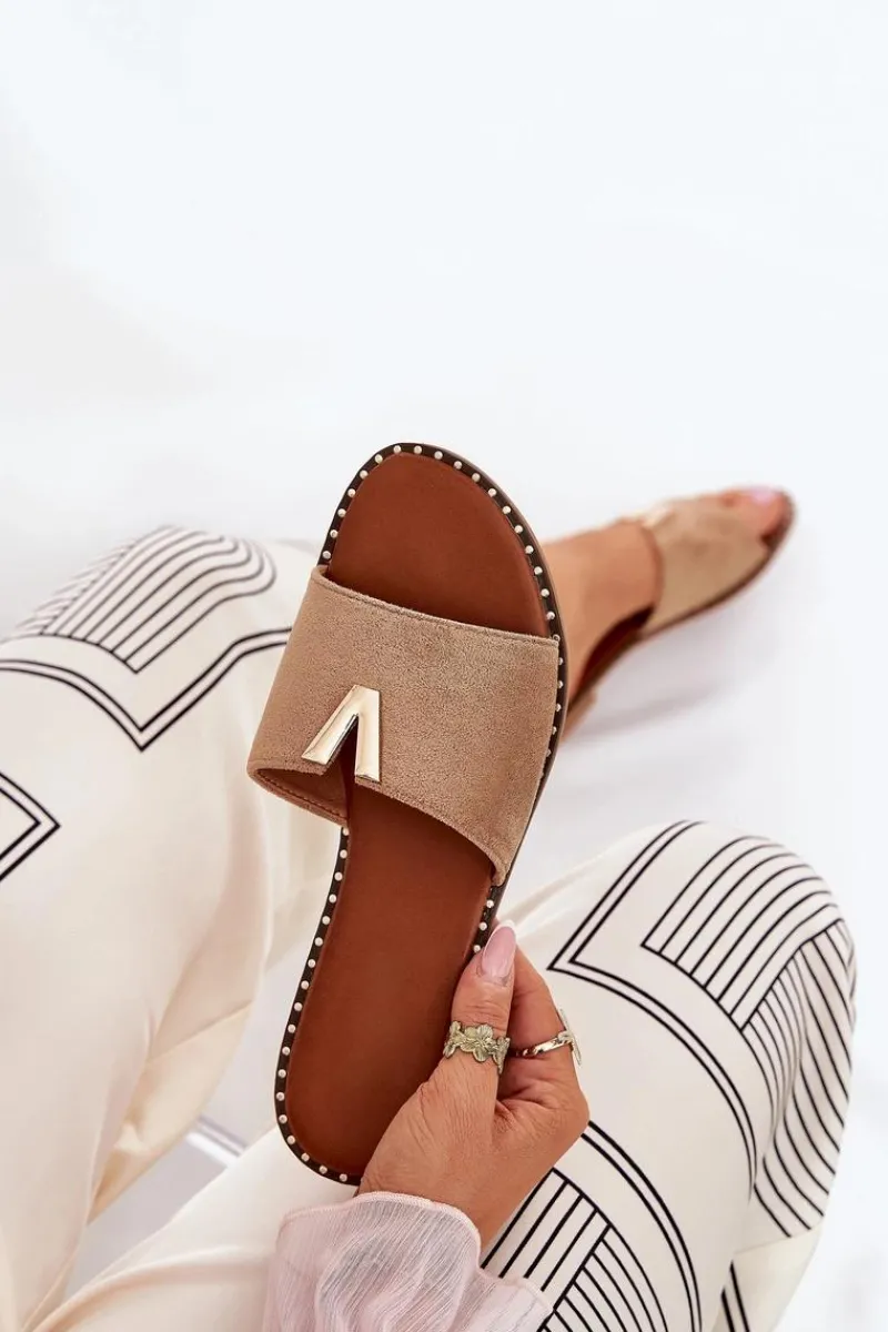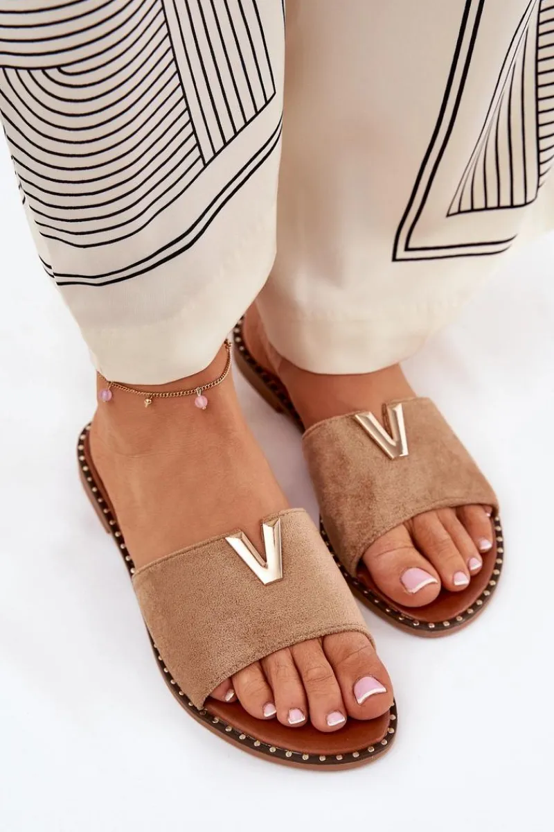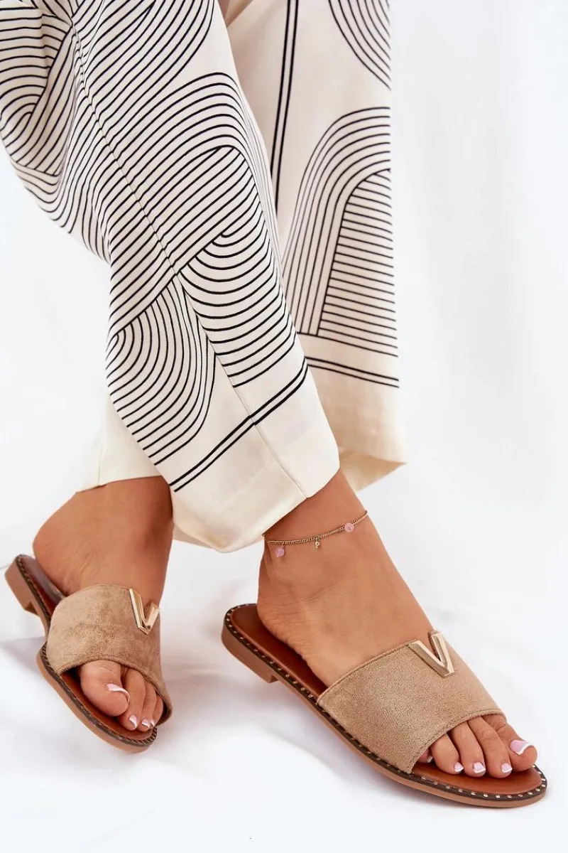 Online Klapki Damskie Na Płaskim Obcasie Z Ozdobnymi Detalami Khaki Saliena Damskie Klapki Damskie Klasyczne