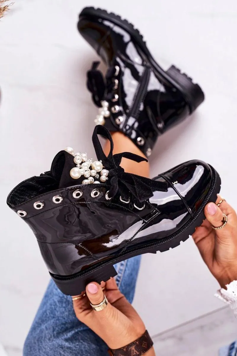 Wyjątkowe botki damskie wykonane z eko skóry. Wnętrze ocieplone jest miłym w dotyku kocem obuwniczym. Model wyróżnia się krojem cholewki oraz ozdobami. Przy wyborze rozmiaru prosimy sugerować się tabelą rozmiarów.