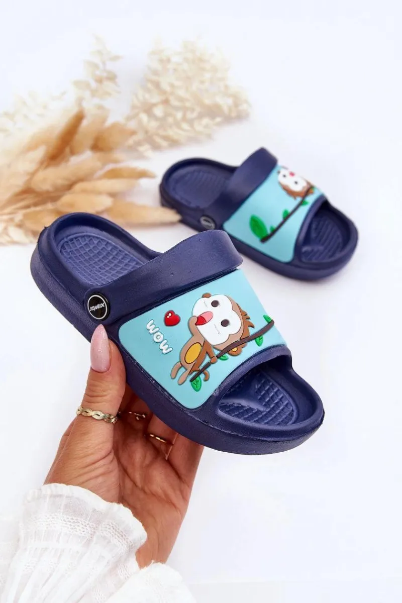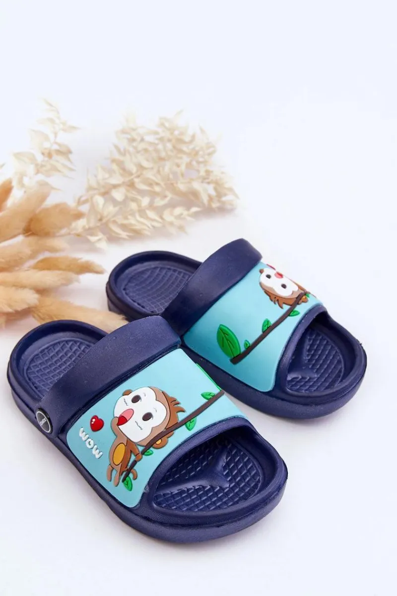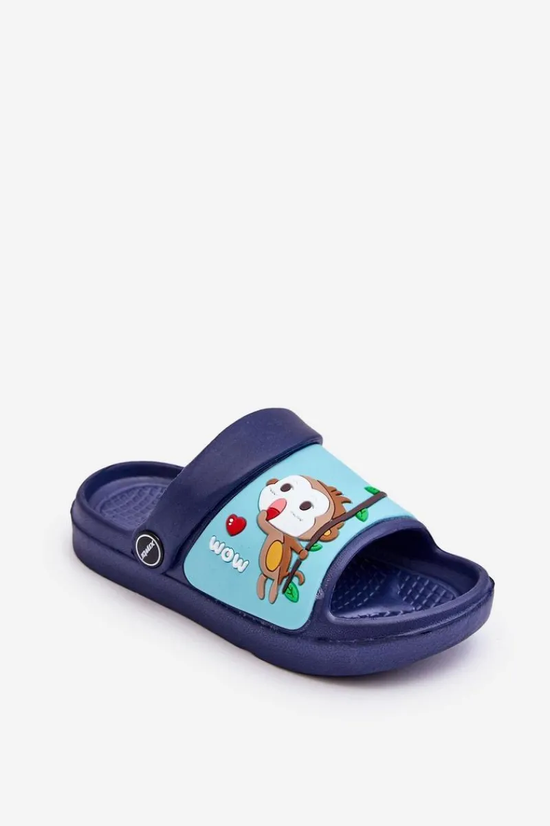 Online Lekkie Dziecięce Klapki Sandałki Z Motywem Zwierzątka Granatowe Rico Dzieci Chłopięce|Chłopięce
