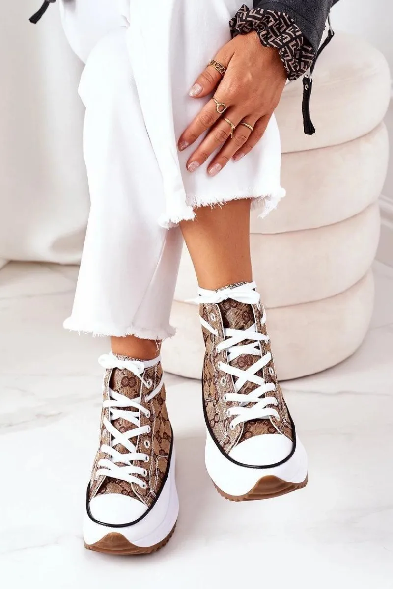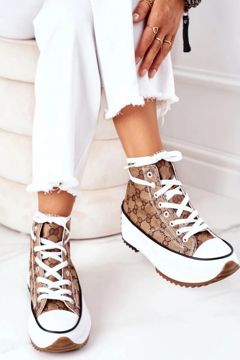 Wyjątkowe trampki na platformie. Buty dobrze dopasowują się do kształtu stopy, posiadają miękką, materiałową wkładkę oraz antypoślizgową podeszwę. Koniecznie sprawdź całą naszą kolekcję trampek! Przy wyborze rozmiaru prosimy sugerować się tabelą rozmiarów.