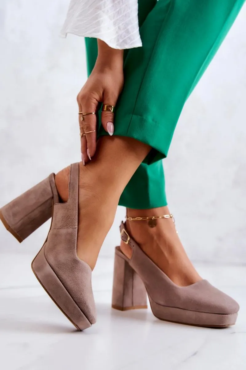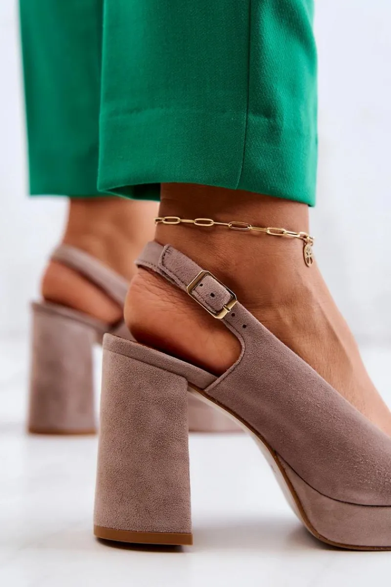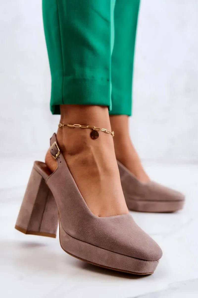 Piękne czółenka z odkrytą piętą marki Maciejka! Wykonane z przyjemnego w dotyku, naturalnego zamszu. Posiadają regulowany pasek zapinany na sprzączkę. Nosek zakryty. Obcas w postaci masywnego słupka zapewni stabilność na każdym kroku. Miękka, wykonana z naturalnej skóry wkładka to gwarancja komfortu podczas użytkowania. Czółenka te świetnie sprawdzą się podczas spotkań biznesowych czy uroczystości rodzinnych. Klasyczny model, wykonany z dbałością o każdy szczegół! Przy wyborze rozmiaru prosimy kierować się tabelą rozmiarów