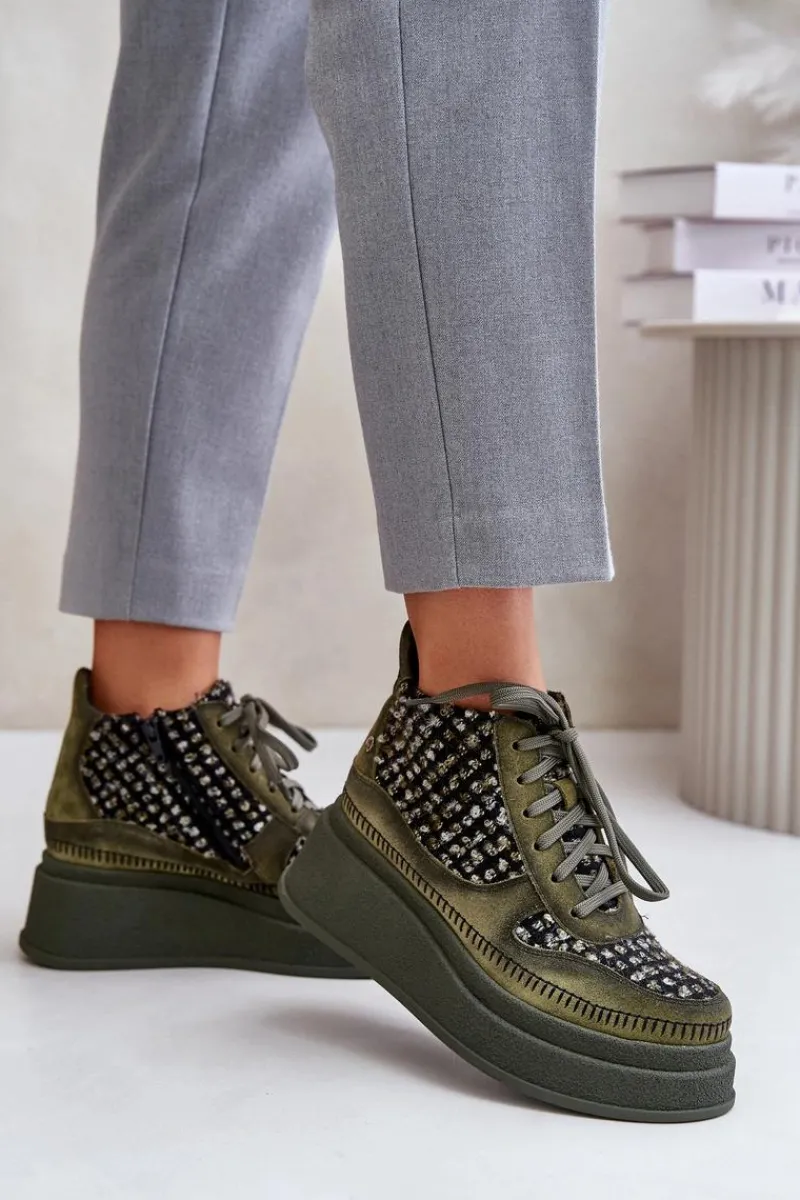 Botki damskie marki Maciejka, wykonane z wysokiej jakości naturalnego zamszu, to doskonałe połączenie stylu i wygody. Osadzone na stabilnej platformie i koturnie, zapewniają komfort noszenia i optycznie wydłużają sylwetkę. Model ten jest zarówno sznurowany, jak i zapinany na zamek, co ułatwia zakładanie oraz idealne dopasowanie do stopy. Dodatkowym atutem jest ozdobna cholewka, która przyciąga wzrok i dodaje charakteru. Lekkie ocieplenie sprawia, że botki są odpowiednie na chłodniejsze dni, a jednocześnie pozostają stylową opcją do wielu jesienno-zimowych stylizacji. Przy wyborze rozmiaru prosimy sugerować się tabelą rozmiarów.