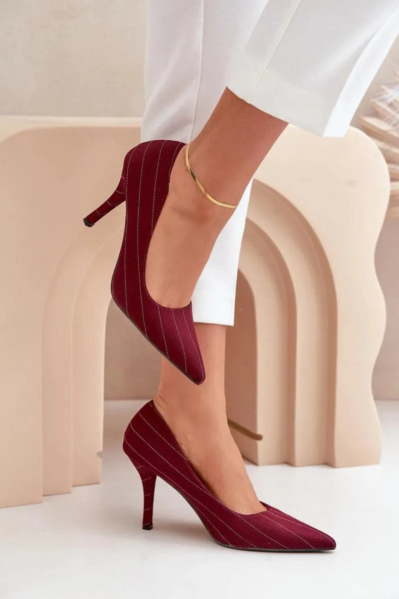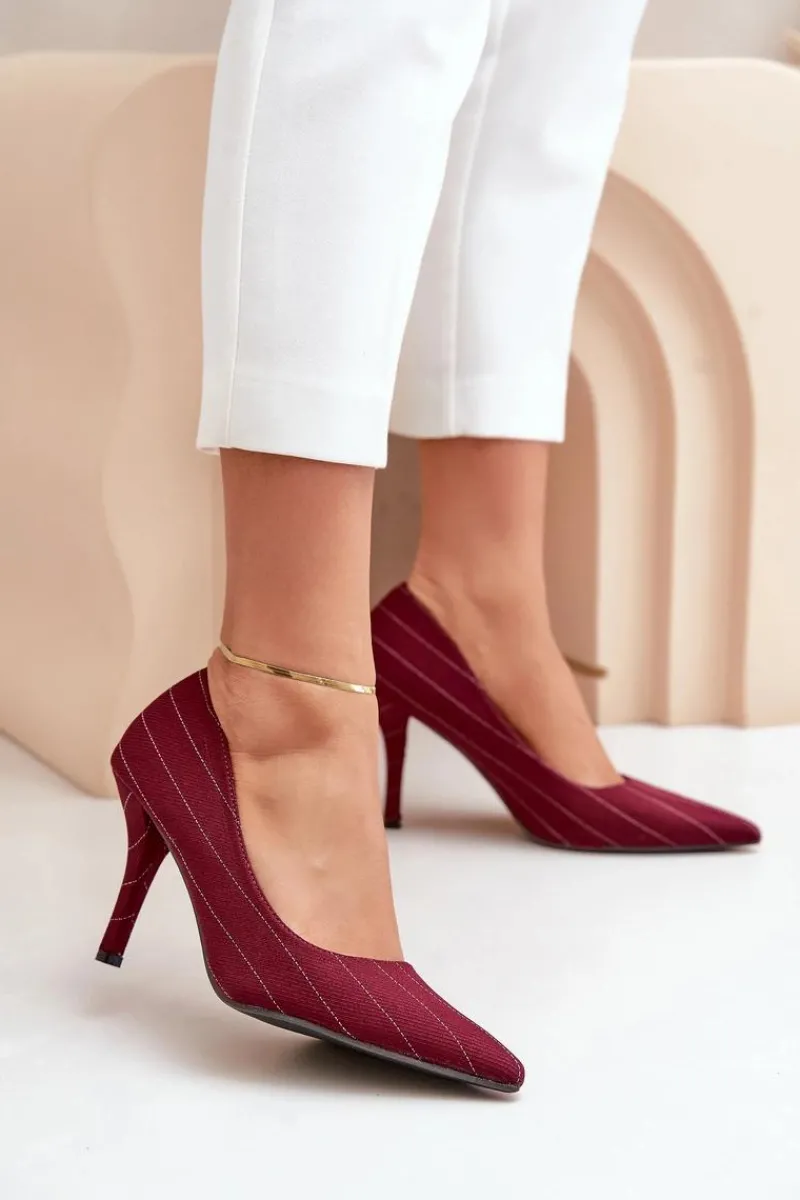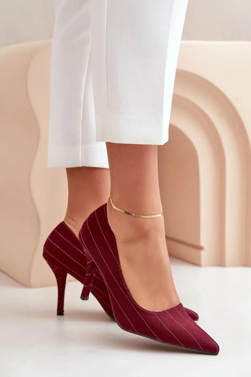 Damskie szpilki wykonane z wysokiej jakości materiału tekstylnego, które doskonale łączą elegancję i wygodę. Model z klasycznym, spiczastym noskiem optycznie wysmukla stopę, a miękka wkładka gwarantuje komfort nawet podczas długiego noszenia. Idealne na specjalne okazje lub dopełnienie stylowych, wieczorowych stylizacji. Przy wyborze rozmiaru prosimy sugerować się tabelą rozmiarów.