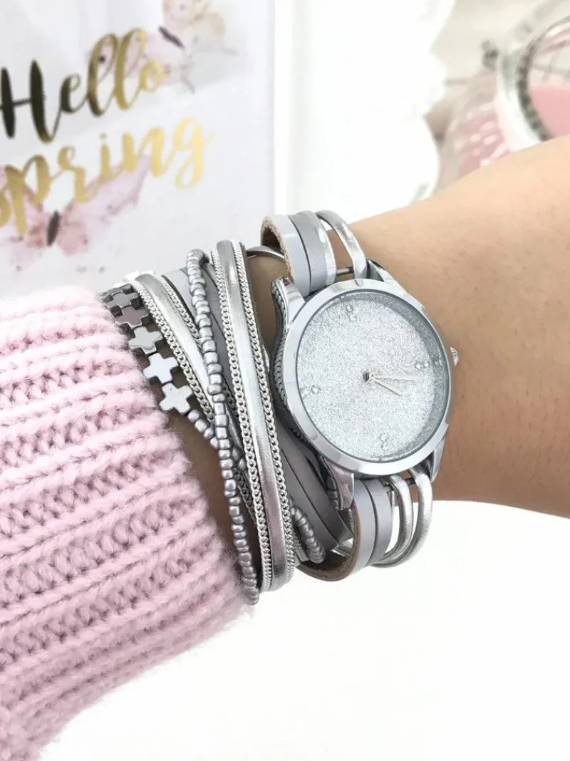 Mówią że „Diamenty to najlepsi przyjaciele kobiety” – w tym stwierdzeniu z pewnością tkwi ziarno prawdy ale my nie do końca się z nim zgadzamy. Równie gustownym dodatkiem kobiecej garderoby jest dobrze dobrany zegarek. Model Nadine marki Michael John to gratka dla Pań ceniących sobie gustowny wygląd w każdej sytuacji. Pięknie zdobiona brokatem tarcza oraz gustowny owijany pasek nadają mu ekskluzywnego wyglądu. Sięgnij po najwyższą jakość marki Michael John.