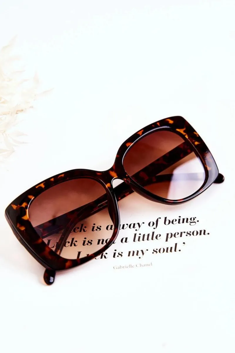 Wyjątkowe okulary przeciwsłoneczne z ozdobą świetnie sprawdzą się w wielu sytuacjach! Nie tylko podczas letniego sezonu, ale także zimowego, kiedy promienie słoneczne odbijają się od śniegu. Model butterfly. Wykonane z tworzywa sztucznego w modnych kolorach. Soczewki z szerszymi oprawkami. Dodatkowo ozdobny emblemat na zausznikach. Informacja od producenta: okulary chronią przed szkodliwym promieniowaniem UV, kategoria 3.