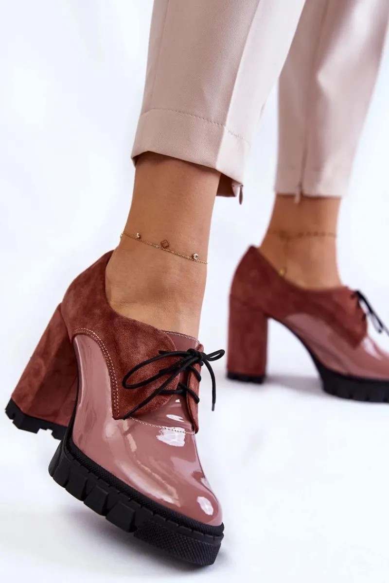Piękne botki damskie zostały wykonane z najwyższej jakości naturalnych skór z dbałością o szczegóły. Model ten posiada klasyczne sznurowanie. Zapiętek w tych botkach jest usztywniany. Osadzono je na obcasie w postaci słupka oraz platformie ze żłobieniami. Miękka wkładka wykonana z naturalnej skóry zapewni komfort podczas użytkowania. Ten model powinien znaleźć się w Twojej szafie! Przy wyborze rozmiaru prosimy sugerować się tabelą rozmiarów.