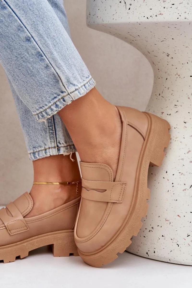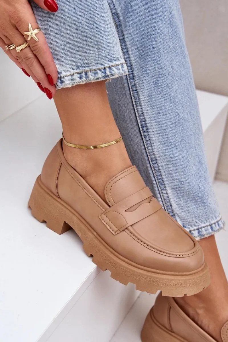 Gładkie mokasyny damskie z eko skóry to klasyka, która nigdy nie wychodzi z mody. Wykonane z eko skóry. Osadzone na płaskim obcasie i platformie, zapewniają wygodę i stabilność przez cały dzień. Ich ponadczasowy fason sprawia, że świetnie komponują się z różnorodnymi stylizacjami, zarówno casualowymi, jak i bardziej formalnymi. Przy wyborze rozmiaru prosimy sugerować się tabelą rozmiarów.