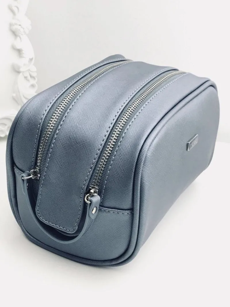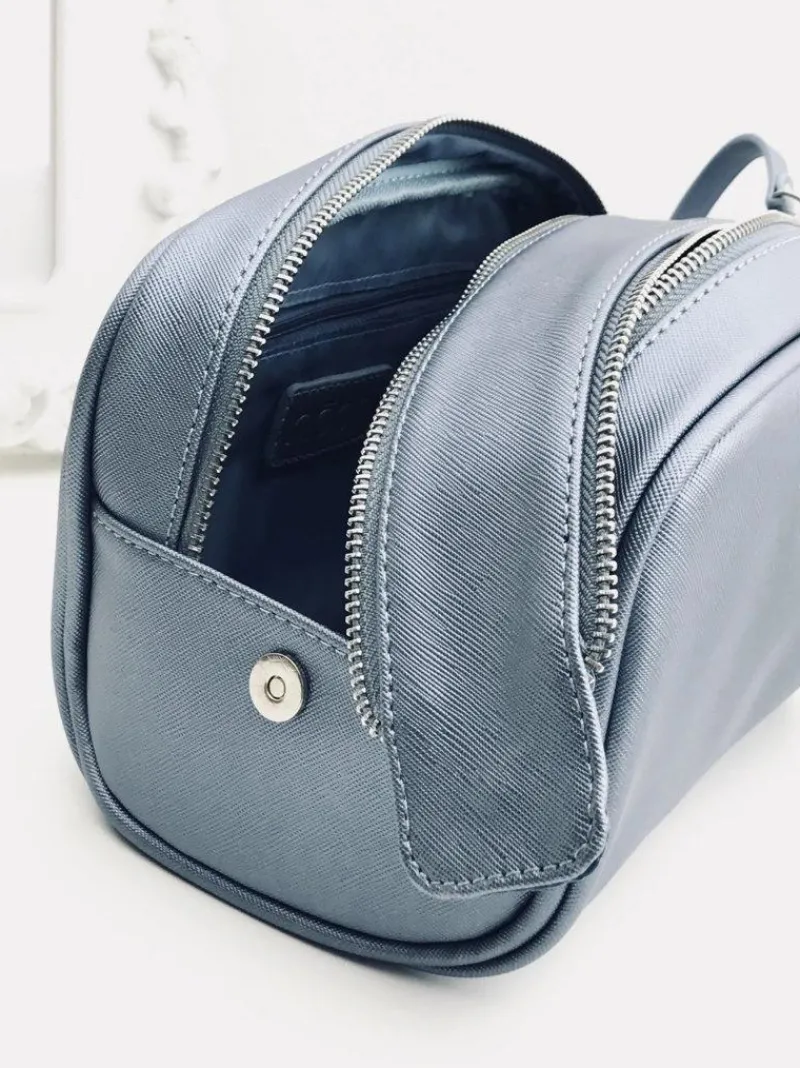 Wykonana z ekoskóry damska kosmetyczka, która może być również saszetką. Małe torebki typu saszetki czy kosmetyczki to w nadchodzącym sezonie hit! Zdobiona połyskującymi okuciami w kolorze srebrnym. Wnętrze torby z jasną podszewką, zapinana na dwa suwaki i magnes, dzięki czemu mamy wygodny dostęp do zawartości. Polecamy ten model jako dodatek do miejskich stylizacji oraz jako niezbędnik każdej kobiety.